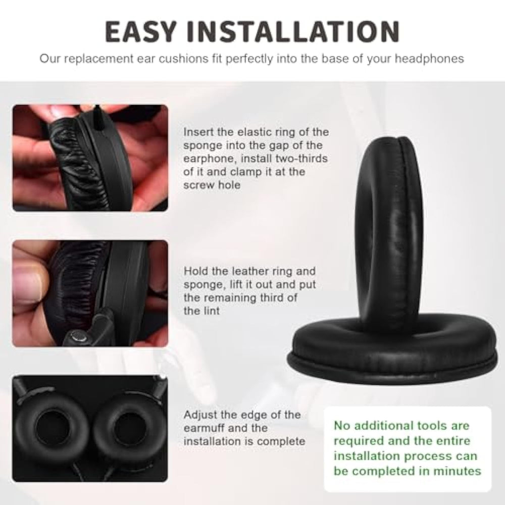 | Compatible With Sony Mdr-Pq2, Mdr-Nc6, And Akg K518, K518Dj, K518Le, K81 Headphones. A Reliable Replacement For Worn-Out Or Damaged Ear Cushions | | Crafted From High-Quality Protein Leather And Memory Foam For A Soft, Durable, And Skin-Friendly Experience. Enjoy Long Listening Sessions Without Discomfort Or Irritation | | Upgraded Internal Foam Enhances Noise Isolation While Providing A Snug, Secure Fit That Maintains Audio Performance And Comfort | | No Tools Required—These Ear Pads Snap Into Place Quickly And Securely. Diy-Friendly Repair Accessory For Restoring Your Headphones In Minutes | | Whether You'Re Commuting, Working, Or Enjoying Music At Home, These Ear Pads Keep Your Headphones In Top Condition And Extend Their Lifespan | |