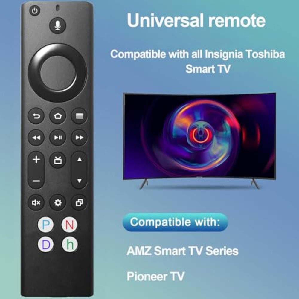 Compatible For Insignia Models:F20/F30/F50/Df710/Df711/Df310/Df510/Df311/Df620 Series,Compatible For Toshiba Models: Lf711/Lf621U/Lf421U/Lf221U/C350/A810U/A710U/M550/V35 Series,For Pioneer Tvs:Pn450/ Pn651/Pn851/Pn951 Series.Also Compatible With Amz Omni,4-Series, Pioneer Tvs. | | With Voice Control Function, You Can Control Your Tv Device Through Alexa Voice At Any Time. Just Press The Voice Button And Ask Alexa To Easily Find, Launch, And Control Content,Such As Play Music,View Sports Scores,Check The Weather And See Live Camera Feeds. Plus You Also Can Quikly Skip To Your Favorite Content With Preset App Buttons For Netflix, Prime Video, Disney+ And Hulu.It Will Make Life More Convenient And Add More Funny. | | This Is Bluetooth Remote Control, You Need To Pair It Firstly Before You Use: Press The Home Button About 8-30 Seconds Until The Led Starts To Rapidly Flash Amber, Then The Remote Should Automati