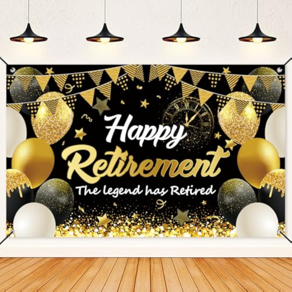 | ?Retirement Party Supplies ??Elevate Your Retirement Celebration With Our Comprehensive Black And Gold Decoration Set! This 7Pcs Kit Features A Stunning “Happy Retirement” Backdrop Banner(70.8 X 43.3 Inch/5.9 X 3.6Ft), 6Pcs Honeycomb Centerpieces – Everything You Need To Create An Unforgettable Retirement Party. | | ?Happy Retirement Decorations For Men Women?Perfect For Retirement Party,Farewell Parties, Goodbye Celebrations Our Decoration Set Caters To Both Men And Women. Use The Honeycomb Centerpieces To Adorn Your Table, Hang The Banners On Garage Door, Balconies, Walls, Windows Etc,Also You Can Write Some Words On It. The Happy Retirement Backdrop Banner Also Makes For An Excellent Photo Backdrop For Birthdays And Other Milestonest. | | ?Easy To Assemble Retirement Party Decor? Retirement Party Decorations Are The Perfect Decorations That You Can Use With Your Family To Enjoy Diy Retirement Party Decorations For Men Into A Unique Retirement Party Backdrop. Retirement Party Supplies For Men Is Very Easy To Assemble And You Will Need Less Than Hour To Complete Your Luxurious Retirement Decorations. | | ?Celebrate New Beginnings?Celebrate The New Chapter In Style! This Decoration Set Prominently Features Fun Phrases Paired With Delightful Designs, Including Balloons, Coffee Cups, Cakes, And Alarm Clocks – All Contributing To The Perfect Retirement-Themed Event. | | ?Versatile Black And Gold Party Decorations?Made From High-Quality, Eco-Friendly Materials, These Decorations Are Lightweight, Easy To Hang, And Convenient To Transport. Retirement Is A Significant Milestone, And Our Decoration Set Is Suitable For Everyone—Moms, Dads, Grandparents, Bosses, Co-Workers, Company Employees, Supervisors, And Friends. Create A Joyful And Memorable Retirement Party With Our Thoughtful Decorations! | |