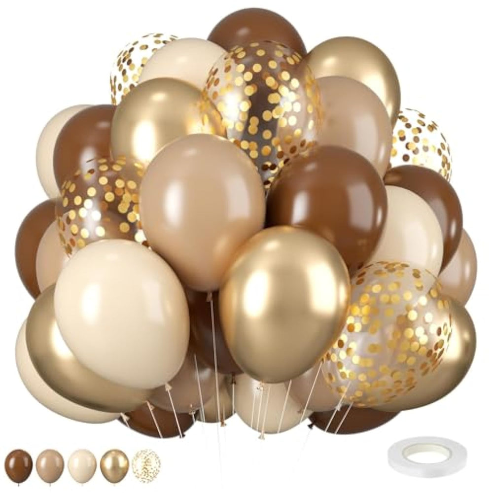??12 Inch Brown And Gold Balloons: Package Content Includes 6 Pcs Brown Balloons, 6 Pcs Cream Balloons, 7 Pcs Khaki Balloons,6 Pcs Sand Gold Balloons,5 Pcs Gold Conffeti Balloons, A Balloon Ribbon.The Perfect Color Combination Meets All Your Party Imagination. | ??Vibrant Party Balloons: Bursting With Lively Colors, These Balloons Are Perfect For Enhancing The Ambiance Of Parties, Dances, Celebrations, And Various Events. Before Inflation, The Balloon Colors May Appear Slightly Different; For Instance, Some Darker Balloons May Seem Black. | ??Premium-Quality Balloons: Crafted From Natural, High-Grade Latex, Each Balloon Undergoes Rigorous Manual Testing To Ensure Exceptional Elasticity And Safety. Suitable For Both Adults And Children, These Balloons Are An Ideal Party Decoration Kit, Suitable For Inflation With Air Or Helium, And Recommended For Use With Balloon Pumps. They Are Non-Toxic And Durable, Ing A Secure And Enjoyable Celebration. | ??User-Friendly Assembly: Whether Filled With Air Or Helium, These Balloons Offer A Versatile Canvas For Your Diy Creativity. Adorn Doors, Walls, Ceilings, Headboards, Doorways, And Other Desired Locations Effortlessly. The Pure Color Balloons Exude Simplicity And Sophistication, Injecting A Joyful Spirit Into Birthday Parties, Weddings, Anniversaries, And Graduation Ceremonies. | ??Precautionary Measures: Upon Receiving Dark-Colored Balloons, Note That Their Pre-Inflation Appearance May Resemble Black; However, The Color After Inflation Precisely Matches Your Preference. Exercise Caution To Prevent Over-Inflation, Sun Exposure, Overheating,