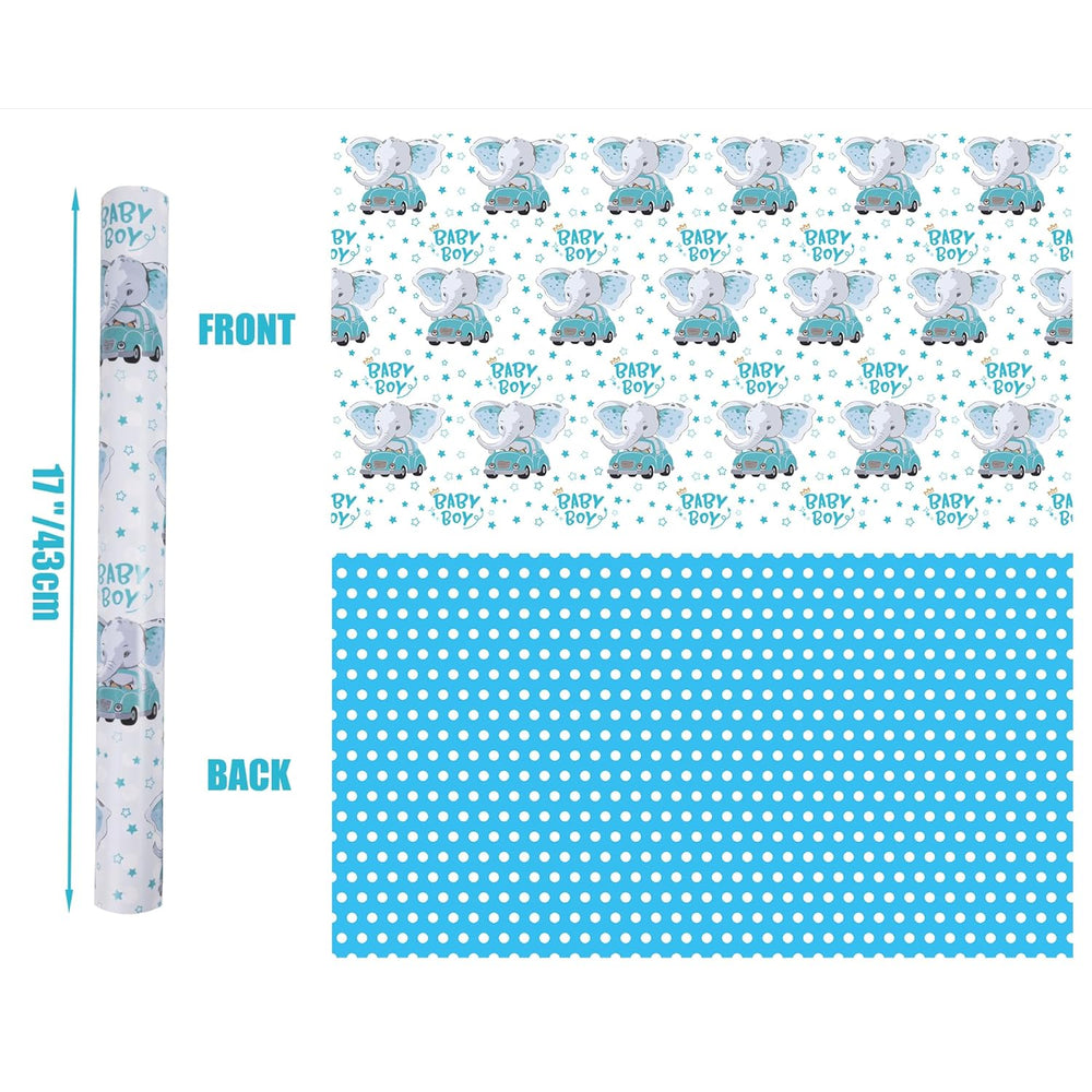 | Adorable Baby Boy Design: Features A Playful Blue Elephant Driving A Car With Bold "Baby Boy" Text, Paired With Classic Blue-White Polka Dots On The Reverse For Versatile Styling. Ideal Size: Each Roll Measures 17 Inches Wide By 33 Feet Long, Providing Ample Coverage For Gifts Of All Sizes. Tear Resistant Luxury Quality: Crafted With 120Gsm Reinforced Paper Core And Anti-Scratch Shrink Film Packaging, Our Thick Yet Flexible Wrapping Paper Resists Rips During Transport While Maintaining Crisp Pattern Details From First To Last Cut. Premium Gift Wrap For Special Occasions: Perfect For Baby Showers, 1St Birthdays, Nursery Parties, Or Holiday Gifts. Elevate Handmade Crafts And Keepsake Boxes With This Joyful Design. Hassle-Free Service : Enjoy 24/7