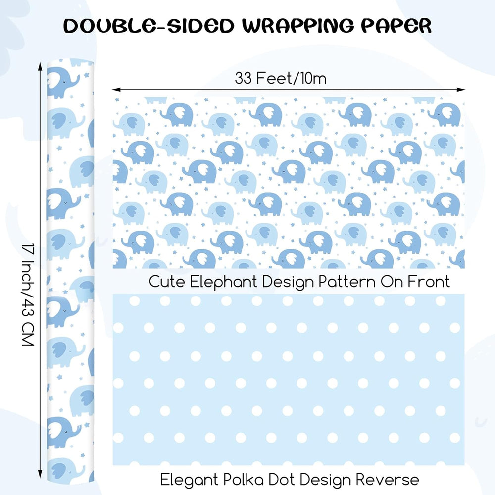 | Reversible Design:Baby Shower Wrapping Paper Boy With A Cute Elephant Design On A Soft Light Blue Background And Polka Dots Design Printed On The Back, Two Different Designs Make Your Gift Unique And Varied, And Also Add A Warm Atmosphere. Suitable Size:Each Roll Of Baby Shower Wrapping Paper Is 17 Inches Wide And 33 Feet Long, And Can Wrap Many Gifts, Making Gift Packaging More Eye-Catching, Please Confirm The Gift Size Before Ordering. Occasions Of Use:This Blue Wrapping Paper Is Perfect For Wrapping Birthday Gifts And Can Also Be Used For Baby Showers, Birthday Parties, Weddings, And Any Occasion Where You Want To To Use It For. Quality Material:The Surface Of The Baby Boy Wrapping Paper Is Smooth, The Paper Is Thick And Not Easy To Damage, And It Is Easy To Fold And Use To Meet Your Gift Packaging Needs For Any Occasion.The Material Of The Wrap Paper Is Made Of Fsc-Certified Paper. Wide Application:The Baby Shower Gift Wrap Size Design Is Wider And Longer, Gorgeous, Suitable For Making Diy Handicrafts, Painting, Flower Packaging, Gift Packaging, Paper Cutting, Construction Paper, Etc.