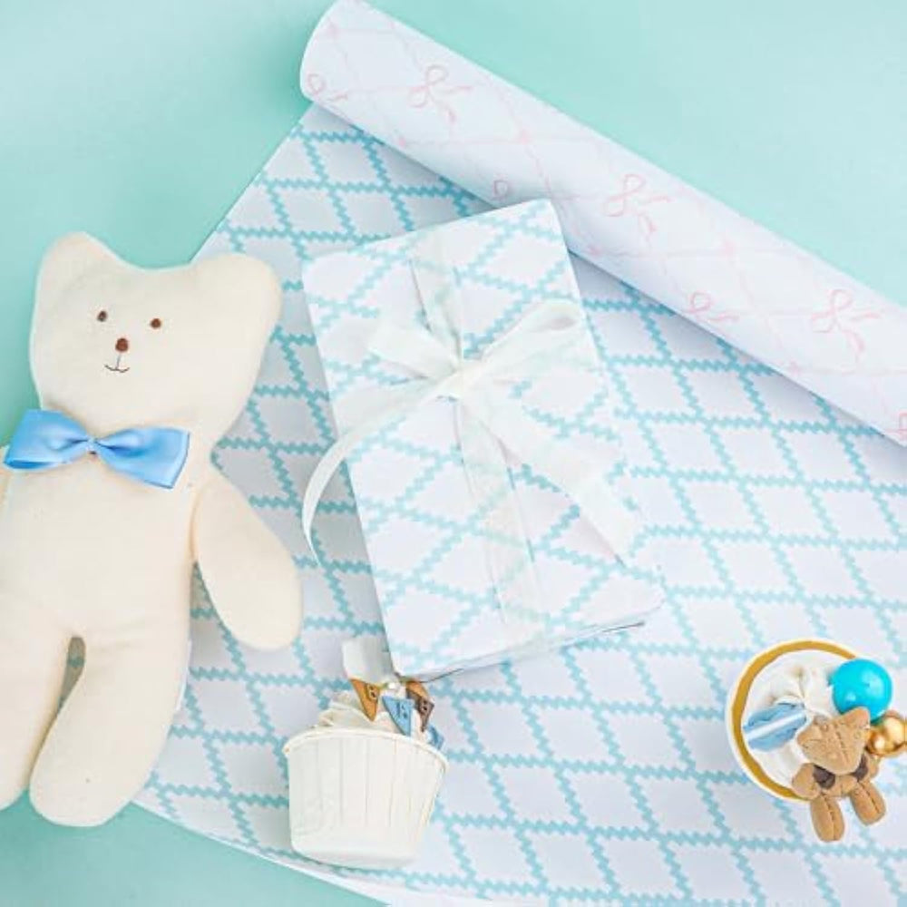 Double-Sided Childlike Pattern: One Side Of This Wrapping Paper Roll Is Printed With Pink Ric-Rac And Bows Patterns, And The Reverse Side Is With Blue Quilted Diamond Patterns. Suitable For Both Boys And Girls, Allowing You To Choose The Appropriate Design According To Different Occasions | Mini Roll: The Mini Roll Wrapping Paper Measures 17 Inches Wide By 33 Feet Long For A Total Of 47 Square Feet, Perfect For Small And Medium Gift. Please Note: The Roll Is Not A Standard Width, More Narrow Than Usual Size | Premium Quality: Crafted From Premium Coated Paper, This Wrapping Paper Is Not Only Thick And Durable But Also Resistant To Tearing Or Ripping | Use All Occasion: These Wrapping Paper Are Perfect For Birthday, Baby Shower, Party And Other Holiday Gift Packaging. It Also Can Be Used For Handmade Diy, Book Cover Decoration And Other Purposes | No Crease: Comes In Roll Form Consisting Of 1 Separate Individually Wrapped In Plastic, Not Folded So No Creases! Item Came With Shrink Film To Prevent Wrapping Paper From Scratches And Reduce Dust |
