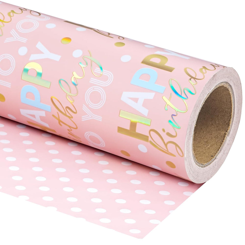 | Perfect Size: Each Roll Measures 17 Inches Wide X 9.8 Feet Long, Which Provides You With A Total Of 13.95 Square Feet Of Paper. It'S Perfect For Any Small Sized Gift And Is Also Very Convenient To Store. Reversible Design: Rose Gold With Gold Foil And Iridescent "Happy Birthday To You" Lettering Printed On Side, Rose Gold And White Polka Dots Are Printed On The Reverse. Two Different Designs Make Unique And Varied Gift Presentations Easy. Premium Quality: Created With High-Quality Paper Materials, Thick And Not Easily Tear Or Rip. Item Came With Shrink Film To Prevent Wrapping Paper From Scratches And Reduce Dust. Use All Occasions: Ideal For Birthday Parties Of All Ages, Whether It'S For A Child Excited About Their Special Day Or An Adult Looking For A Fun Wrapping Option, This Paper Is A Good Choice For Any Gift. It Is Also Great For Diy Craft Projects. Quality