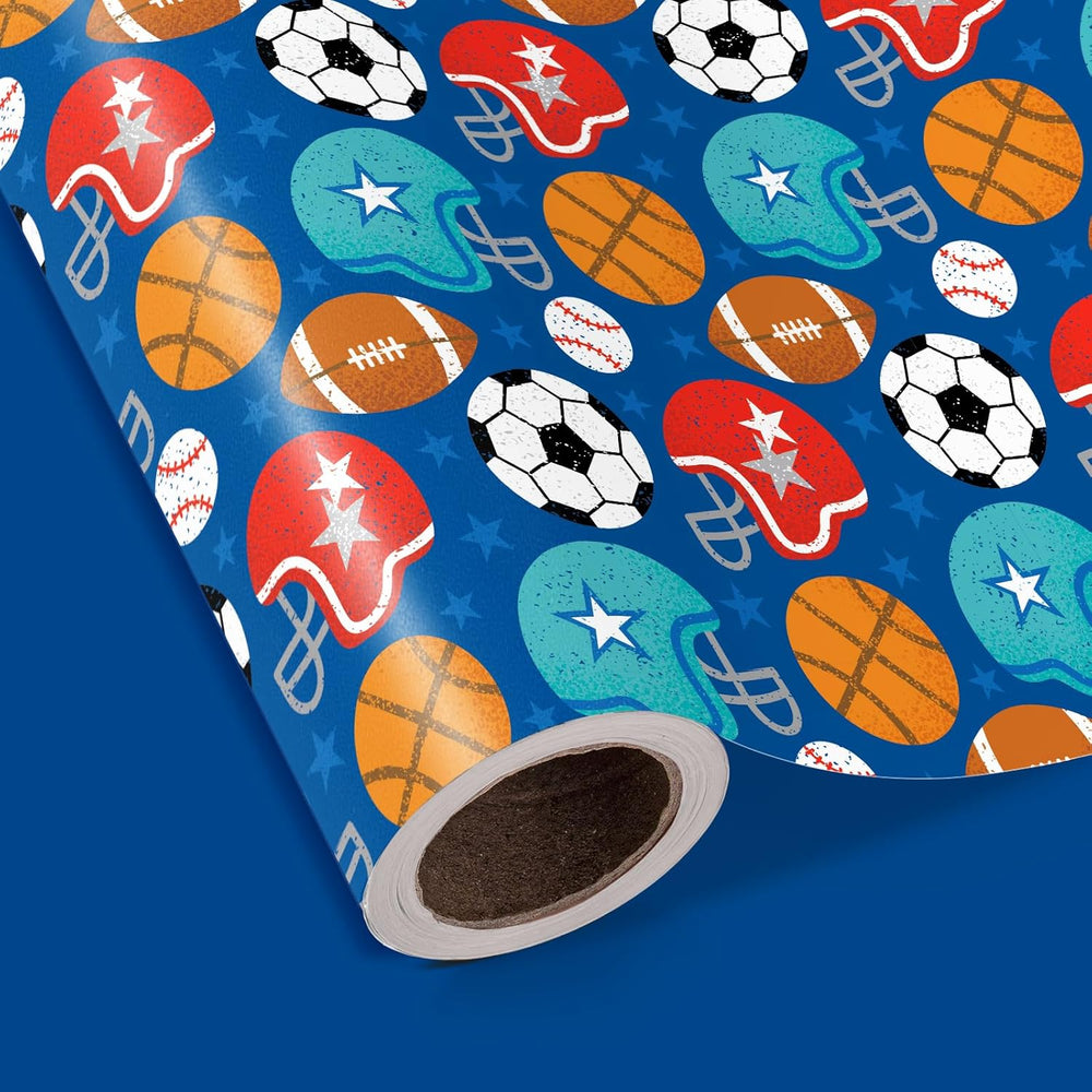 | Perfect Size: Each Roll Measures 17 Inches Wide By 33 Feet Long. Reversible: Rugby, Headguard, Baseball, Football And Basketball Printed On One Side, Solid Blue Printed On The Reverse. Two Different Designs Make Unique And Varied Gift Presentations Easy. Premium Quality: Created With High-Quality Paper Materials, Thick And Not Easily Tear Or Rip. Item Came With Shrink Film To Prevent Wrapping Paper From Scratches And Reduce Dust. Use All Occasion: Perfect For Birthday, Baby Shower, Holiday, Christmas, Wedding, Mother Day Gifts Wrap. It Is Also Great For Craft Project. Quality