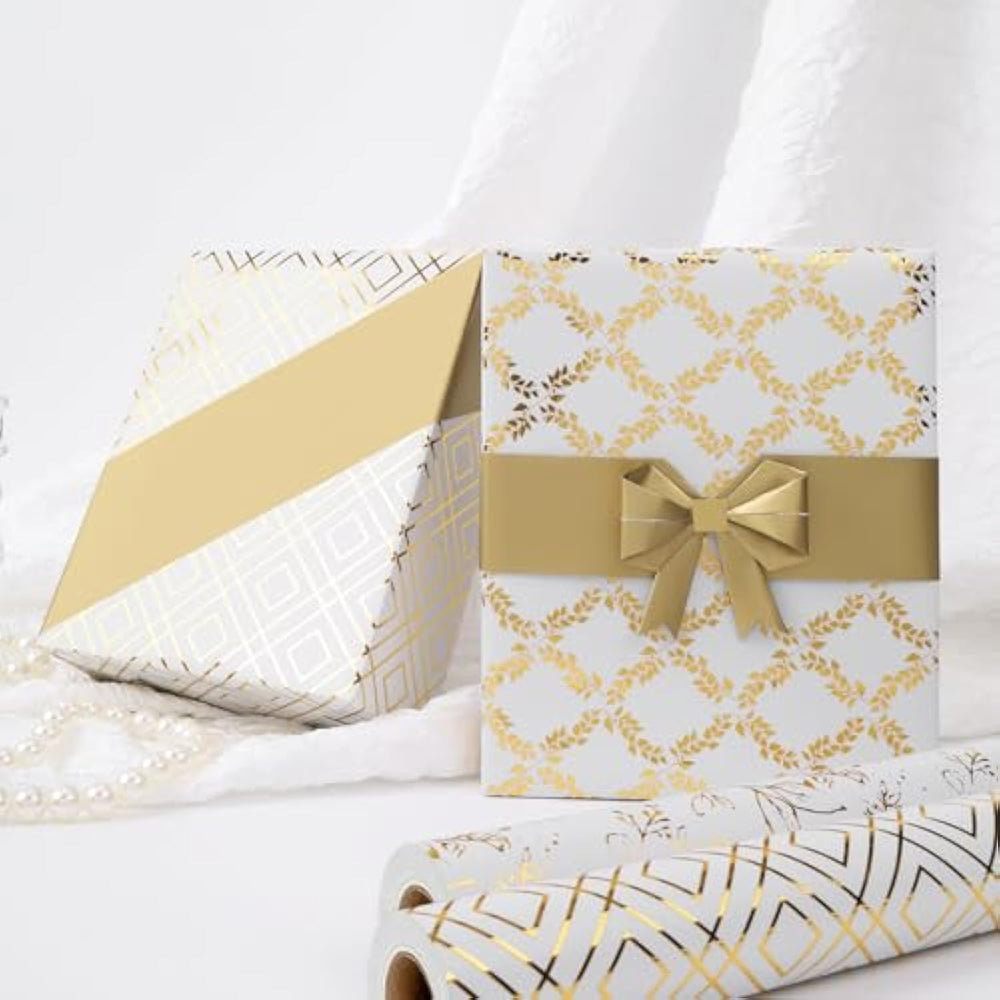 Classic Reversible Design – Features A Timeless Gold Lattice Leaf Pattern On One Side And A Solid Gold Reverse For A Sophisticated And Elegant Look, Perfect For High-End Gift Wrapping | Mini Roll – With A Generous 17 Inches X 33 Feet, Perfect For Wrapping Multiple Small Gifts, Making It Ideal For Holidays, Weddings, And Birthday Gifts | Premium Quality: Crafted From Premium Quality Materials, This Wrapping Paper Is Durable With A Smooth Finish. It’S Thick And Resists Tearing, Ensuring Your Gifts Are Wrapped With Care And Elegance | All Occasion: Ideal For Any Occasion, Including Bridal Shower, Birthday, Valentine'S Day, And Everyday Gift-Wrapping Needs, Making It A Versatile Choice For All Your Celebrations | Easy To Work With: This Wrapping Paper Is Easy To Cut, Fold, And Manipulate To Create Beautifully Wrapped Gifts, Ensuring A Smooth And Enjoyable Gift-Wrapping Experience |