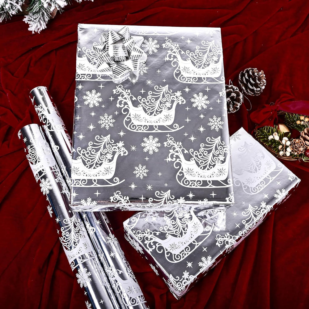 | Reversible Sliver Christmas Wrapping Paper Roll - Red Black Xmas Sleigh Stripe Design For Holiday Winter Parties