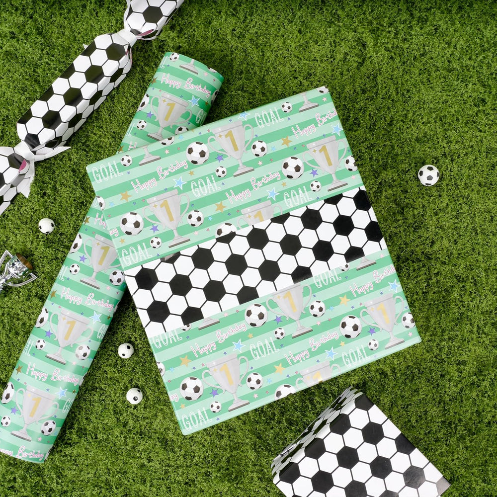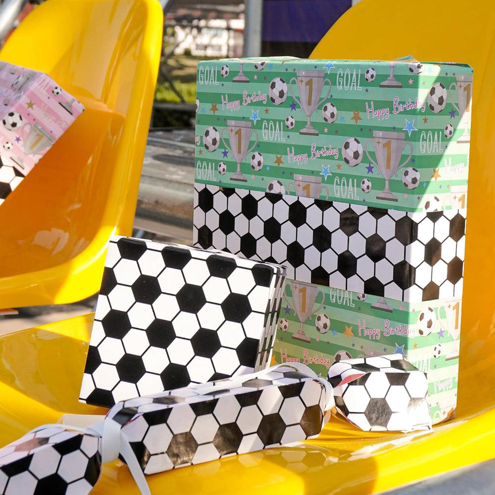 | Double-Side Soccer Design: One Side Of This Wrapping Paper Roll Is Printed With A Green Background Featuring Soccer Balls, Trophies, And "Goal", "Happy Birthday", And The Reverse Side With A Bold Black-And-White Soccer Ball Print. It Adds An Instant Dose Of Joy And Celebration To Your Gifts Mini Roll: The Gift Wrap Paper Comes With A Roll Of 17" X 33', Providing You With A Total Of 47 Sq Ft Of Paper. Suitable For Wrapping Small And Medium-Sized Gifts. Please Note: The Roll Is Not A Standard Width, More Narrow Than Usual Size Use All Occasion: These Wrapping Paper Are Perfect For Birthday, Baby Shower, Party, And Other Holiday Gift Packaging, Especially For Soccer Lovers Or Young Athletes. It Also Can Be Used For Handmade Diy, Craft Projects And Other Purposes Durable Material: Made From High-Quality Paper Materials, Thick And Not Easily Tear Or Rip, Ensuring Your Gifts Are Showcased Beautifully And Enhances Your Gift'S Aesthetic No Crease: Comes In Roll Form Consisting Of 1 Separate Individually Wrapped In Plastic, Not Folded So No Creases. Items Come With Shrink Wrap To Protect The Package From Scratches And Dust