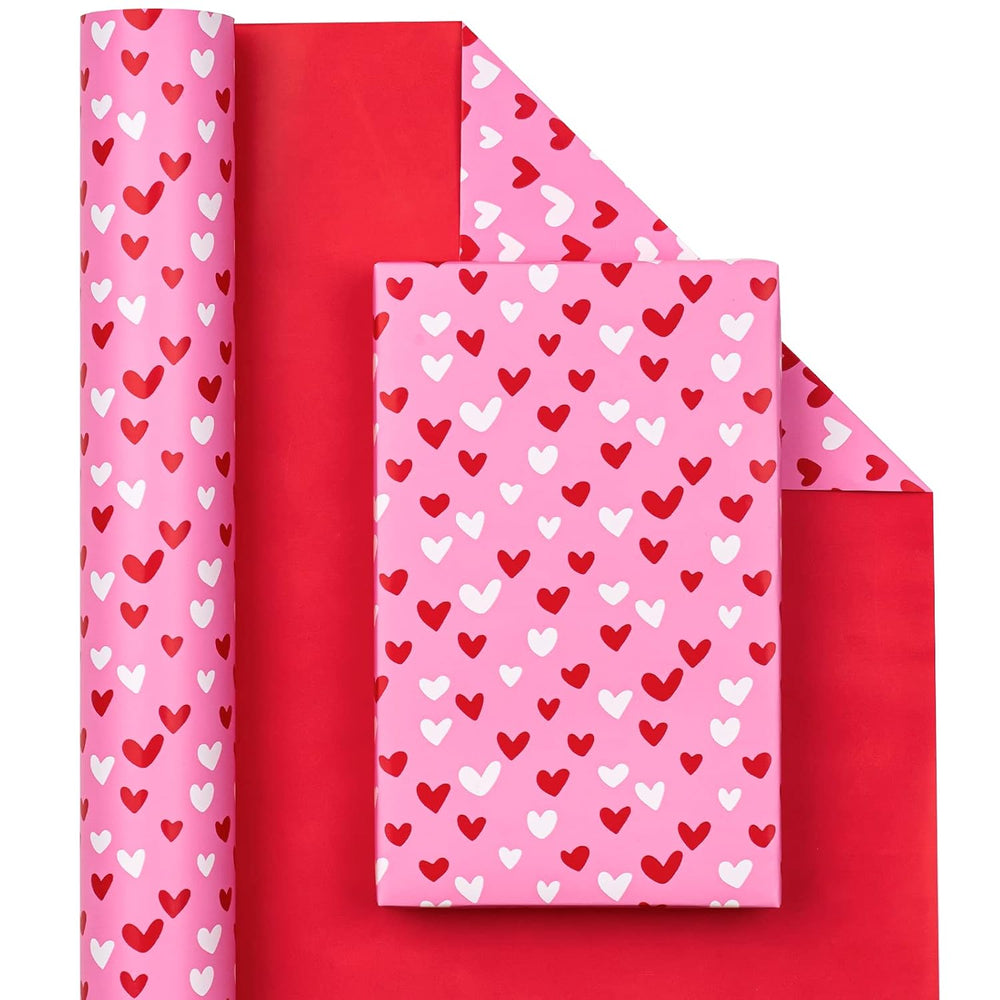 | Perfect Size: Each Roll Measures 17 Inches Wide By 33 Feet Long Reversible: White And Red Heart Printed On One Side, Solid Red Printed On The Reverse. Two Different Designs Make Unique And Varied Gift Presentations Easy Premium Quality: Created With High-Quality Paper Materials, Thick And Not Easily Tear Or Rip. Item Came With Shrink Film To Prevent Wrapping Paper From Scratches And Reduce Dust Use All Occasion: Perfect For Valentine'S Day, Birthday, Anniversary, Christmas, Wedding, Mother Day, Baby Shower, Graduation Gifts Wrap.It Is Also Great For Craft Project Quality
