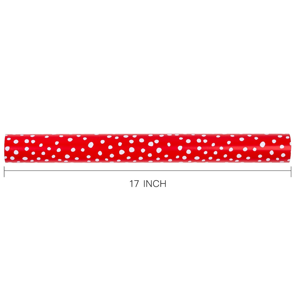 | Reversible: A Solid Red Side And A Red/White Delicate Polka Dot Side. Two Different Classic Designs Make Beautiful And Varied Gift Presentations Easy Perfect Size: Each Roll Measures 17 Inches Wide By 33 Feet Long Premium Quality: Created With High-Quality Paper Materials, Thick And Not Easily Tear Or Rip. Item Came With Shrink Film To Prevent Wrapping Paper From Scratches And Reduce Dust Use All Occasion: Perfect For Birthday, Holiday, Christmas, Wedding, Valentine'S Day, Baby Shower Gifts Wrap.It Is Also Great For Craft Project And Bouquet Wrap Quality