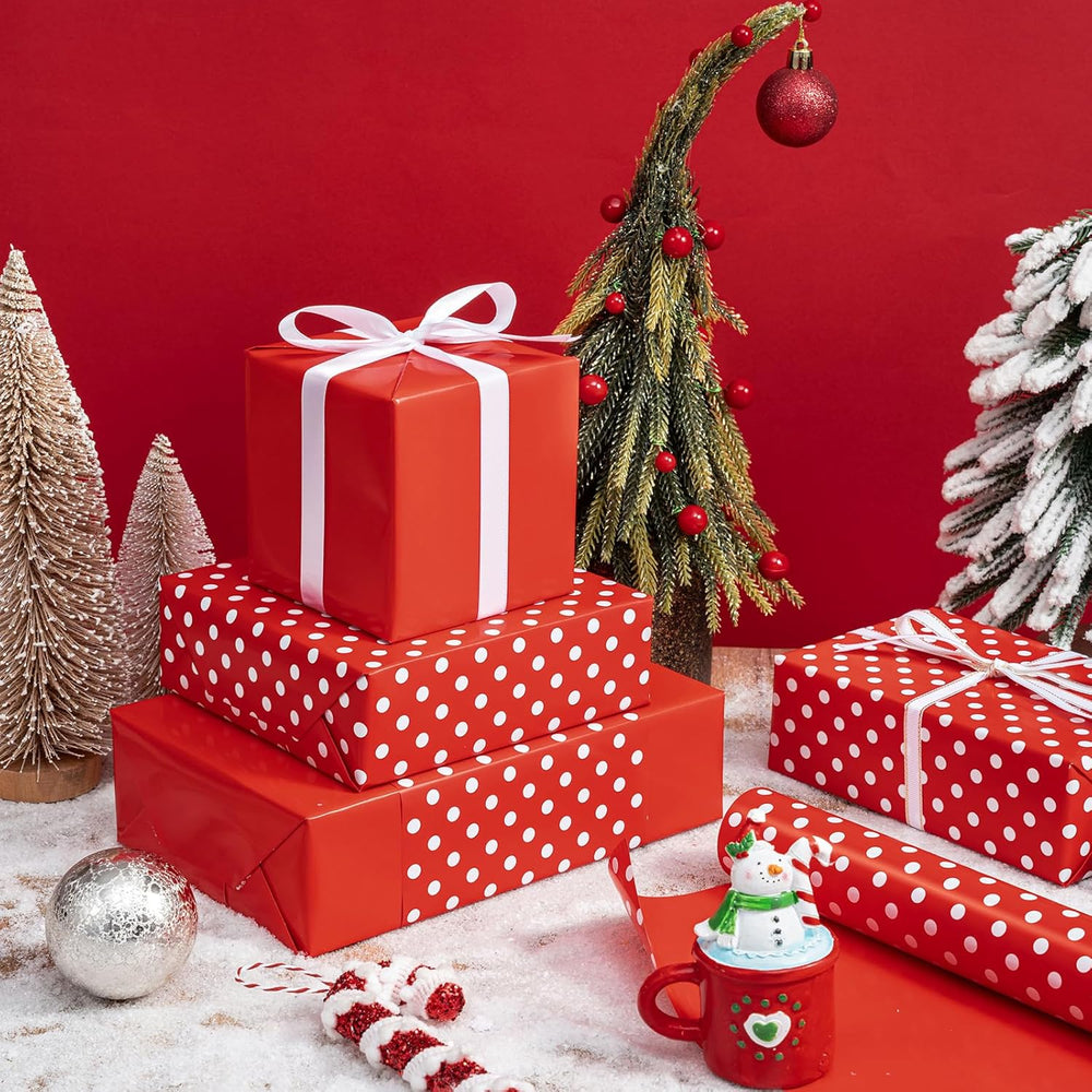 | Reversible: A Solid Red Side And A Red/White Polka Dot Side. Two Different Classic Designs Make Beautiful And Varied Gift Presentations Easy. Perfect Size: Each Roll Measures 17 Inches Wide By 33 Feet Long. Premium Quality: Created With High-Quality Paper Materials, Thick And Not Easily Tear Or Rip. Item Came With Shrink Film To Prevent Wrapping Paper From Scratches And Reduce Dust. Use All Occasion: Perfect For Birthday, Holiday, Christmas, Wedding, Valentine'S Day, Baby Shower Gifts Wrap.It Is Also Great For Craft Project And Bouquet Wrap. Quality