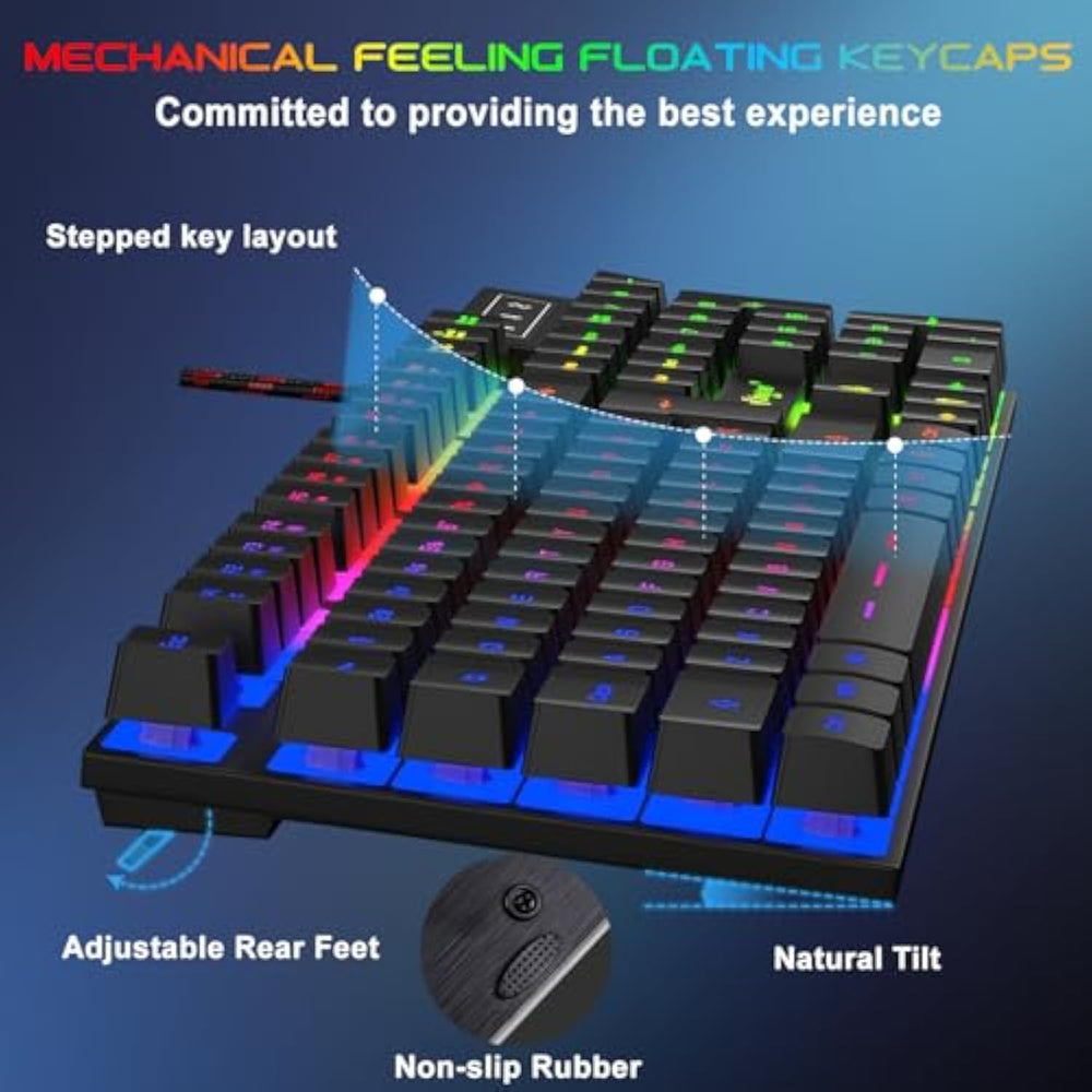 | ?All In 1 Gaming Bundle?: Includes Rgb Backlit Gaming Keyboard And Mouse, Red Gaming Headset, Mouse Pad. All-In-One Pc Gamer Value Kit, Ideal For Beginners, Casual Gamers, Or Anyone Upgrading Their Desktop Setup. | | ?Backlit Gaming Keyboard?: Rainbow Backlit Keyboard, You Can Easy Turn On/Off By Pressing “Scroll Lock” Key, The Rainbow Backlight Can Illuminate The Letters Through The Keys, Which Make It Easier For You To Type In A Dark Room. The Double-Shot Injection Moulding Process Ensures That Letters Never Fade And Have Good Light Transmission. | | ?6 Buttons Gaming Mouse?: Ergonomic Gaming Mouse Is Designed To Fit Naturally In Your Hand, Providing A Comfortable Grip And Precise Control. The Forward And Backward Buttons Will Help You Navigate The Web Faster And Easier Than Ever Before. 4 Levels Dpi Adjustable (800-1200-1600-2000). | | ?Red Led Gaming Headset?: Dominate Your Game With A Red Backlit Stereo Headset, Bring Immersive Stereo Sound. This Headset Delivers Clear Highs, Rich Mids, And Punchy Bass. The Adjustable Headband And Cushioned Ear Cups Offer Comfort For Extended Play. Built-In Mic Ensures Crisp Voice Communication With Teammates. | | ?Exquisite Mouse Pad?: The Mouse Pad Size:12.5 X 9.4 Inch, Provide Large Space For Mouse Moving, Made Of Superior Material, Smooth Exquisite Cloth On Surface Provide Comfortable Wrist Rest Support, The Rubber At The Bottom Ensures Mouse Pad Does Not Slip. | | ?Compatible System?: Usb Wire, Plug Play. Work Well For Pc, Computer, Laptop, Ps4, Xbox One. Compatible With Windows Xp/ Vista/ Win 7/ Win 8/ Win 10. If You Are Not Satisfied With Our Product Or Service, Please Feel Free To