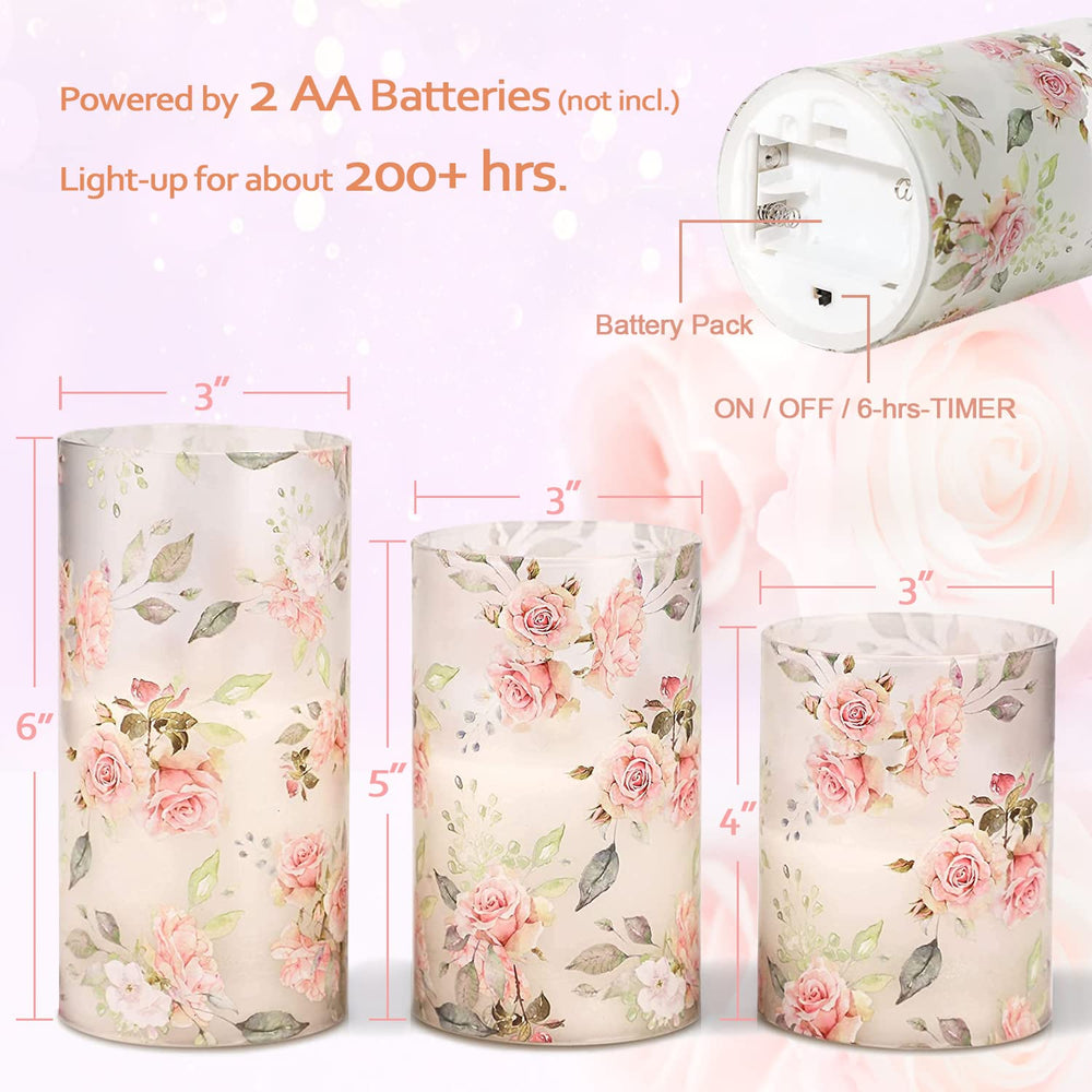 | ?Battery-Operated, Wax-Made Flameless Candles?These Flameless Candles Are Made Of Real Wax Powered By 2 Aa Batteries. You Can Go Out And Leave Them At Home. No Need To Worry About Drip Wax Or Catching Fire. | | ?Spend Less - Remote Control Included?The Remote Control In The Package Is A Bonus. You Can Control These Flameless Candles By The Remote. No Need To Buy It Separately! | | ?Set The Timer With Minimal Effort? Please Press The 2/4/6/8 H' Button On The Remote To Make The Timer Work. If You Set A Timer For 6 Hrs At 17:00, The Hydrangea Decal Candles Will Turn On For 6 Hrs, Turn Off At 23:00 And Cycle Automati