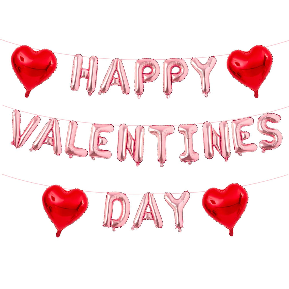 | Valentine’S Decor Kit – Includes Rose Gold “Happy Valentines Day” Letter Balloons And 4Pcs Red Heart Foil Balloons,Comes With Ribbon And Straw, Offering A Complete Solution To Deck Out Your Space For Valentine’S Day | | Valentines Day Balloons– Happy Valentines Day Balloons Banner Perfect For Valentine’S Day Parties, Anniversary Celebrations, Intimatenights, Or As A Surprise Setup For Your Partner, Instantly Infusing Any Area With Love And Sweetness | | Valentines Day Decorations – Happy Valentines Balloons Crafted From High-Quality Foil Material, And Feature A Glossy Sheen That Enhances The Festive And Romantic Ambiance, Effortless Setup – Equipped With Hanging Strings, Simply Inflate The Balloons (Works With Air Or Helium), Then Assemble Them Into A Banner—Just Charming Decor In Minutes | | Valentine Day Balloons: Valentine'S Day Balloons For Valentines Day, Daily Decoration, Room Decoration, Wall Decoration, Etc, This Happy Valentines Day Balloons Banner For Home Valentines Day Decorations | | After-Sales Service: If You Have Questions About Happy Valentines Day Decorations Balloons, You Can