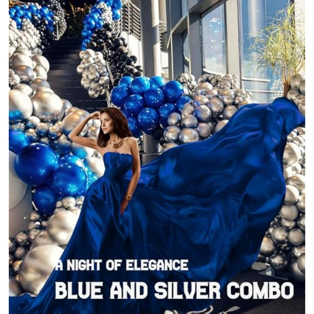 ?Classic Royal Blue And Black Silver Balloon Kit?Includes The Following 160+Pcs 5" 10" 12"18"Balloons In Various Sizes, We Chose Royal Blue And Black Silver As Palette For The Theme, Glue Dot Tie Kit Lets You Create A Cheerful And Vibrant Atmosphere, Perfect For Celebration Themed Party | ?100% Reliable Color ? We Insist On 100% Real Photography?Providing True Color Of Every Single Balloons,What You Have To Do Is Trust Your Color Insprition And Idea. Reliable Consistent Color Balloons To Make Your Party Decor Perfect. | ?For Many Occasions ? Whether You'Re Celebrating A Baby Shower, Birthday, Celebration Themed Party, Or Throwing The Funniest Picnic Party Ever, The Royal Blue And Black Silver Balloon Garland Kit Is The Perfect Centerpiece For Your Decor. Can Be Hung As A Backdrop, Balloon Garland, Balloon Arch, Centerpiece, Table Runner, Staircase | ?Easy To Assemle With Tutorials ?Our Balloons Are Carefully Packaged With Tutorials And Set Up Tools For Balloon Garland, We Recommend Just Fill With Air Not Helium, 12Ft Balloon Garland Take Approximately An Hour To Put Together. Since Balloons Will Oxidize , Set Your Garland 1-2 Hours Before The Event Will Be Better ,These Long-Lasting Balloons Filled With Air Will Stay Full For Up To 72 Hours. | Make A Great Party With These Fantastic Balloons,Make It Memorable, In A Way |