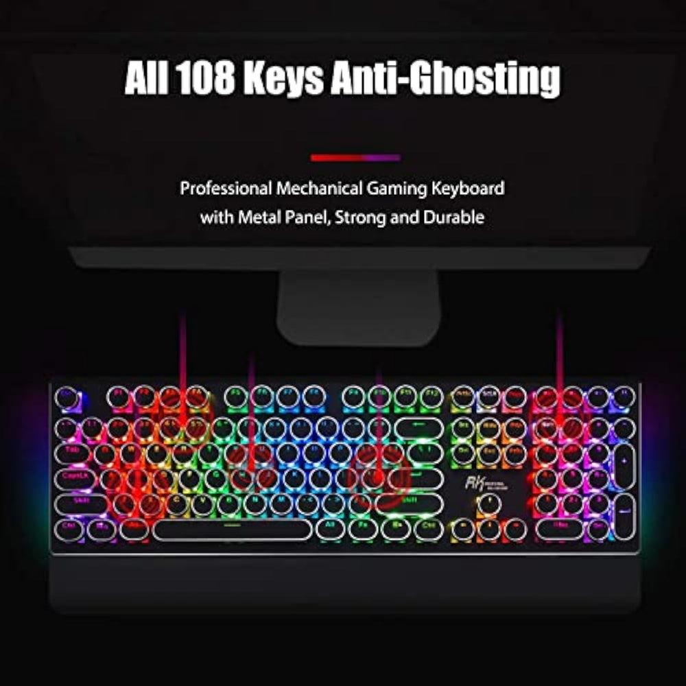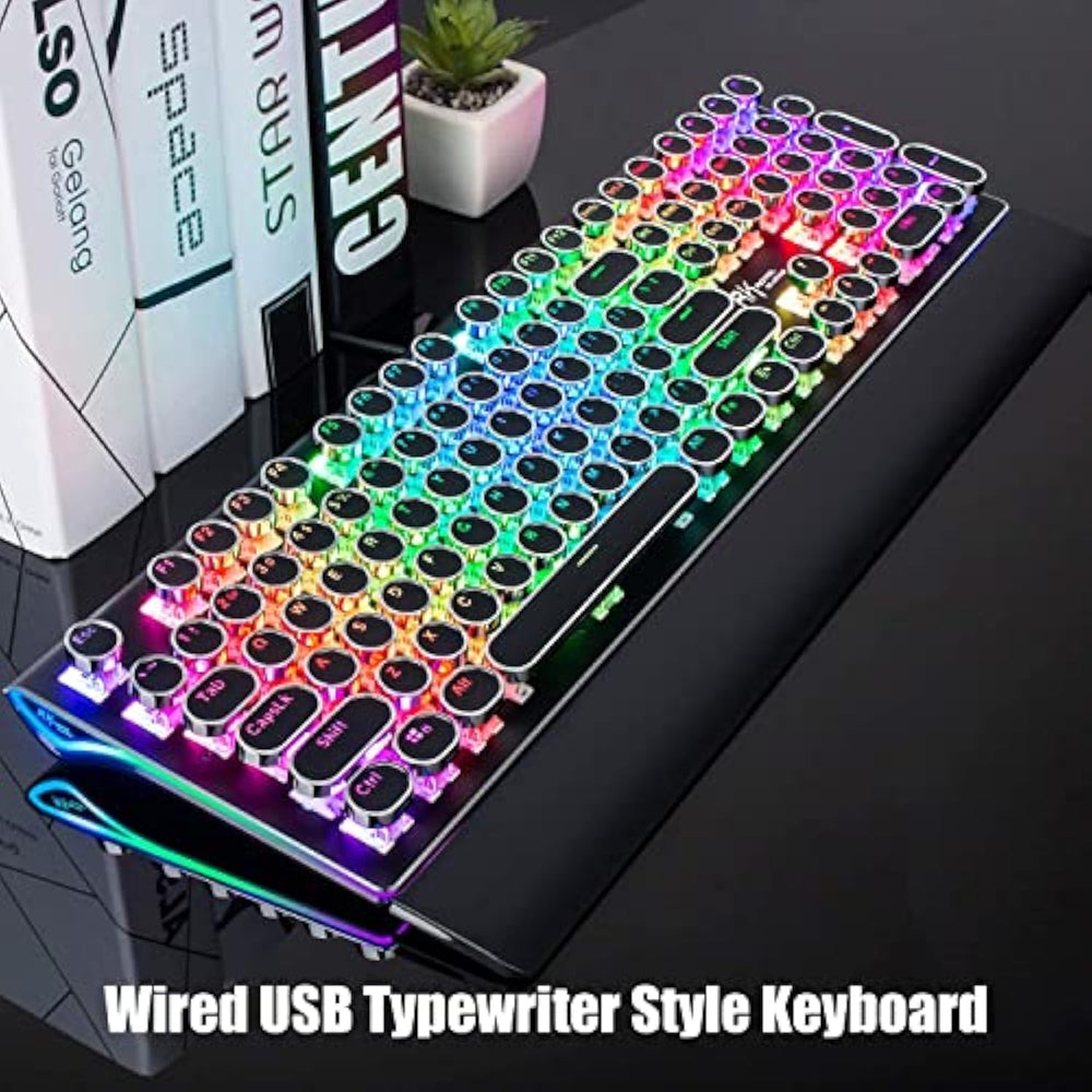 | Retro Typewriter Style With Mechanical Keys: Mechanical Blue Switches Offer Medium Resistance, Audible Click Sound Tactile Feedback, Provides Responsive And Precise Gaming Environment And Performance. Vintage Steampunk Keyboard Round Keycaps Looks Like A Classical Typewriter, Brings You Comfortable Typing Feeling Stable Clicking Touch. | | Unique Rgb Backlit Light Up Keyboard: Featuring Dynamic Colorful Per-Key Illumination, Up To 168 Led Backlit Modes, Dynami
