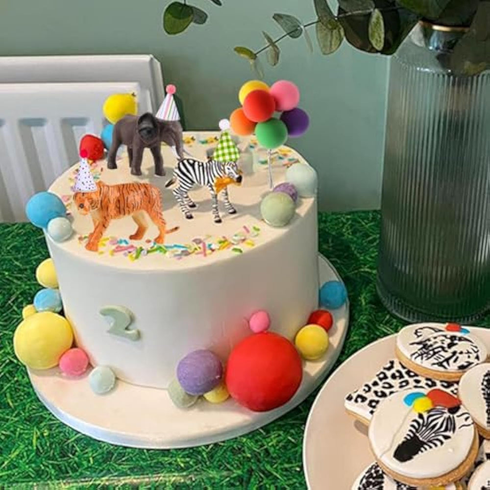 | Package – Including 1 Pieces Elephants, 1 Pieces Tigers, 1 Pieces Zebras, 1 Pieces Happy Birthday Cake Topper, 16 Pieces Clay Balloons, 3 Pieces Simulated Leaf, And 10 Pieces Mini Hats. | | Material – The Jungle Animals Are Made Of Pvc Material. | | Cake Decor – The Safari Animal Cake Topper Is Perfect For Safari Animal Themed Party, Birthday Party, Wild One Cake Topper, Jungle Cake Topper, Baby Shower, Funky Wedding Celebrations. | | Unique Design – The Zoo Animal Cake Decorations Are Vivid. Unique Details Help Enhance Imagination And Creativity | | Safari Theme – Safari Animal Cake Toppers Are Suitable For Birthday Party, Holiday, Zoo Themed Party, Festival Celebration, Cake Decorations Or Party Supplies, These Safari Themed Cake Decors Will Be Fun. | |