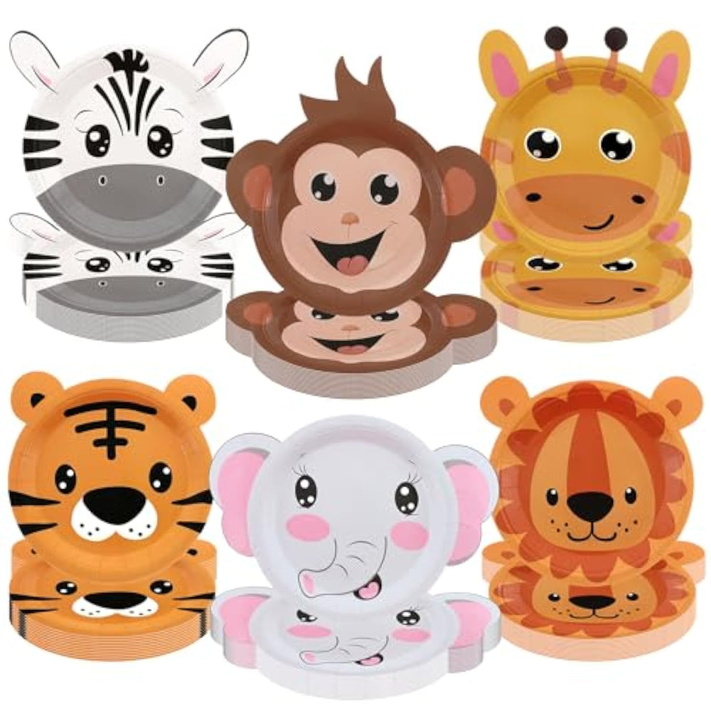 | Package Includes:You Will Receive 60 Pieces Jungle Animal Shaped Paper Plates, Including 10 Plates Each For Monkey, Elephant, Lion, Tiger, Giraffe And Zebra,Sufficient Quantity And Diverse Patterns That Can Satisfy Your Various Needs For A Safari Animal Part. | | Mutiple Animal Print: The Jungle Animal Theme Shape Paper Plates Feature Unique And Cute Animal Shapes, Which Will Be The Highlight Of The Party Table And Create A Good Jungle Theme Party. | | Premium Material:Animal Print Party Plates Are Made From Food-Grade Cardboard, Thickened And Sturdy, Can Hold Up Well With Any Kinds Of Food. You Can Easily Create A Dynamic Birthday Party Atmosphere. | | Disposable And Convenient:Animal Print Themed Tableware Set Reduce Clean-Up Time So You Can Enjoy The Party With Your Family And Friends At This Wild Zoo Print Themed Party. | | Multiple Occasions:Safari Animals Party Paper Plates And Napkins Are Prefect For Jungle Theme Party Supplies, Zoo Birthday Party Supplies, Wild One Birthday Party, Bbq, Forest Picnic, Animal Lovers Gathering, Jungle Adventure, Wild Fishing, Outdoor Gathering, Holiday, Clubs And More! | |
