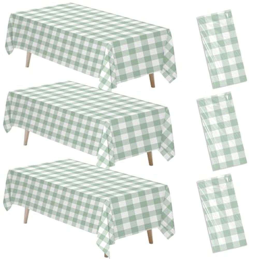 | ?Sage Green Checkered Tablecloth?Bring A Fresh, Charming Touch To Your Event With This Classic White And Green Gingham Pattern. Nice For Baby Showers, Birthdays, Or Any Picnic-Inspired Celebration | | ?Premium Material?Made From Quality Material, This Sage Green Gingham Party Supplies Tablecloth Is Easy To Clean, Ensuring It Can Handle Spills And Messes While Protecting Your Table Surface | | ?Generous Size?3 Pcs Of Sage Green Gingham Party Decorations Tablecloth, Measuring 55 Inches By 86 Inches, Provides Ample Coverage For Most Standard-Sized Tables, Making It Suitable For Various Table Shapes And Sizes | | ?Versatile Use?Ideal For Rustic, Vintage, Or Outdoor-Themed Parties, This Sage Green Gingham Table Decorations Suits A Variety Of Events From Baby Showers, Bridal Showers, Bachelorette Parties, Casual Picnics, And Birthdays | | ?Easy Cleanup?Designed For Convenience, This Disposable Sage Green Plaid Tablecloth Allows For Quick And Effortless Cleanup, So You Can Spend More Time Enjoying The Celebration And Less Worrying About Cleaning Up | |