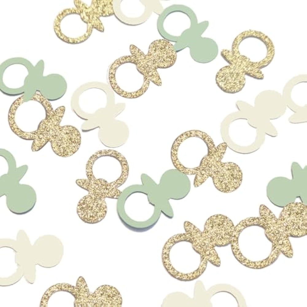 | Sage Gold Pacifiers Paper Confetti: Add Unique Touch To Your Sage Woodland Themed Baby Shower With This Adorable Pacifiers Confetti. Complete Your Table Decorations Confetti Featuring Parcifiers In Sage, Gold And Ivory. Perfect For A Boho Theme Or Gender Neutral Baby Shower. | | Sage Neutral Baby Shower Decorations: The Neutral Color Palette Makes These Confetti Pieces Versatile For Both Boy And Girl Celebrations, From Baby Showers To First Birthday Parties. Sprinkle The Sage Confetti Around Your Table As A Finishing Touch To Your Celebration Table. Scatter On Tables At Children'S Birthdays, Baby Shower Party Games, Gender Reveal Parties, Or Even In Cards, Presents, Invitations Or Just To Throw In The Air. | | Material Size: Sage And Gold, Cream Pacifiers Confetti Table Scatters Are Made Of Quality Card Stock These Make Perfect Baby Shower Decor. Each Pack Contains 200 Pacifiers In Cream, Sage And Gold. Pacifiers Measure Approximately 3Cm (1.2") High. | | Variety Occasion: Sage Pacifiers Paper Confetti Are Ideal Decorations For Baby Showers, Gender Reveal Parties, First Birthdays, Baptisms, And Other Infant Celebrations | |