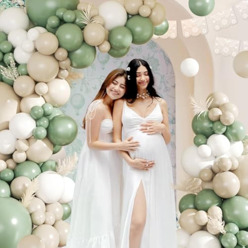 | [Package Includes]--The Sage Green Balloon Arch Kit Includes A Total Of 145 Balloons In Different Sizes: 18”, 12”, 10”, And 5”. The Kit Features 3Colors— Sage Green, Sand White, And White-Great For Designing A Show-Stopping Balloon Garland | | [Thick Long-Lasting]--Dusty Green Balloon Garland Kit Features Thick, Long-Lasting Latex Balloons That Are Non-Toxic, Skin-Friendly, And Resistant To Leaks Or Punctures. These Green And Sand White Balloons Maintain Their Vibrant Colors Throughout Your Entire Party, Whether Used For Indoor Or Outdoor Decorations | | [Wide Application]--The Neutral Green Balloon Arch Kit Is Ideal For Birthday, Gender Reveal Baby Showers, Celebrations, Bridal Weddings, Graduation,Engagements, Anniversaries, Corporate Events, Bachelor Party, Galentine’S Day, Bridal Showers,First Communion ,Baptism,And More! Use Them As A Photo Backdrop, Entrance Decor, Ceiling Garland, Or Table Centerpiece. The Mix Of Green And White Shades Creates A Dreamy Vibe | | [Beginner-Friendly]--Quick Setup! Simply Inflate With Air Or Helium, Attach To The Included Balloon Strip, And Customize Your Design. The Glue Dots And Ribbons Help Secure The Balloons Effortlessly. Tip: Use A Balloon Pump For Faster Inflation | | [Warm Reminder]--Let Us Know If Any Balloons Are Damaged Or Missing. Tip: For Best Results, Keep Balloons Out Of Direct Sunlight And Avoid Over-Inflating | |