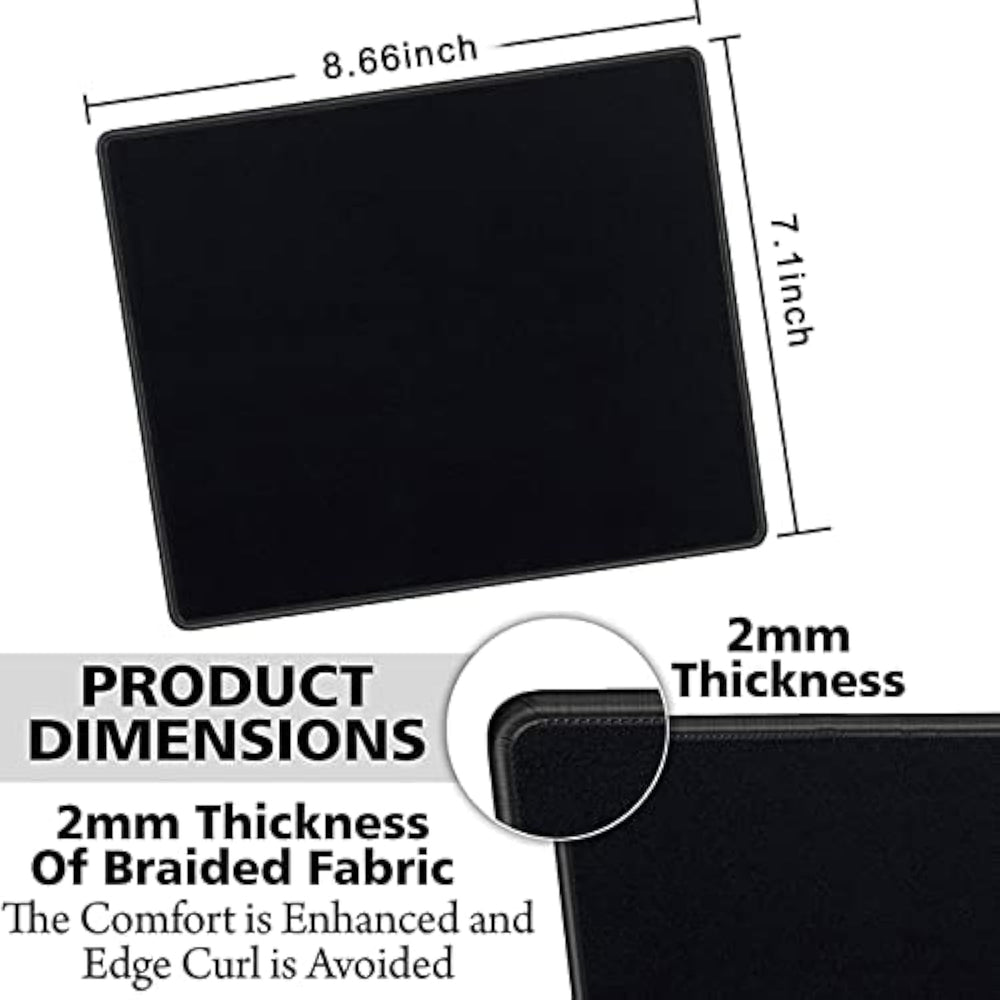 | Made of Premium-textured and smooth cloth surface that the mouse glides over nicely, it is optimized for fast movement while maintaining excellent speed and control, great for daily work or gaming. | | This computer mouse pad has delicate edges which can prevent wear, deformation and degumming in prolonged use. And the edge even the seams at the edge are flat, comfortable for your wrists and hands. | | Dense anti-slip rubber base provides heavy grip preventing sliding or movement of mouse pads, available for any flat, hard, tabletop surface. Low-friction top-material for accurate tracking the movement of cursor. | | Dimensions : 8.66 x 7.1 inch, Available for all types of mouse, wired, wireless, mechanical, laser optical. | | Large size Mouse pad, Gaming Mouse pad, mouse pad for pc, mouse pad for laptop. | |