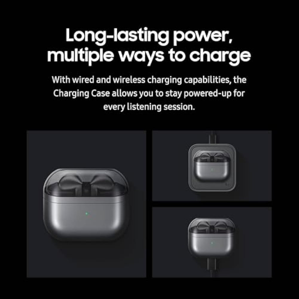 | LONG LASTING POWER, MULTIPLE WAYS TO CHARGE: With wired and wireless charging capabilities, the Charging Case allows you to stay powered-up for every listening session. | | PAIRS EFFORTLESSLY: Galaxy Buds3 Pro easily pair to your Galaxy device once you open the case.¹ To connect, simply press and hold the button on the bottom of the case for 3 seconds and you’re ready to start using them. | | CHARGING CASE ONLY: Earbuds not included. | |
