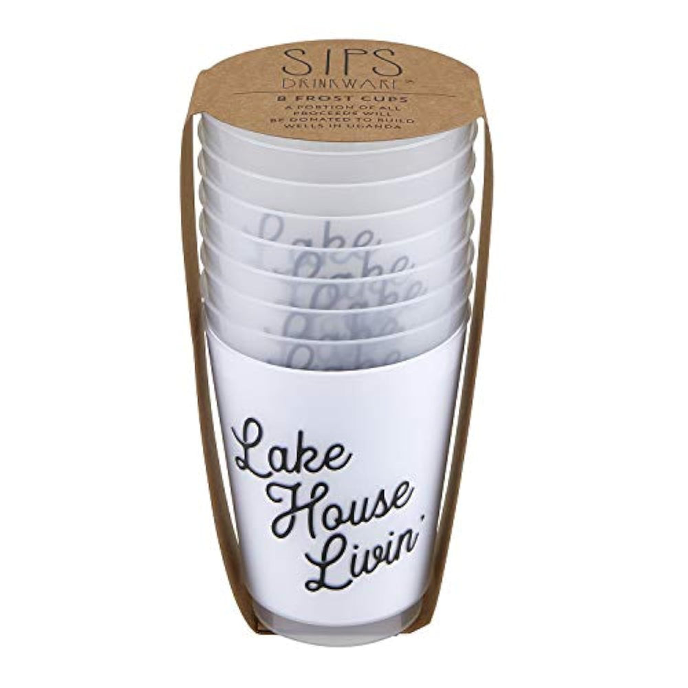 | BPA FREE PLASTIC CUPS: Matched set of 8 frosted plastic beverage cups | | MEDIUM SIZE: Each cup holds 16-ounces of your favorite beverage, measures 4.5-inches tall and 3.5-inches in diameter | | BLACK PRINT: White frosted cup; reads "Lake House Livin'" | | DURABLE: For single-use or hand wash and reuse | | SANTA BARBARA DESIGN STUDIO: Has been offering quality-made, designer home décor and gifts since 1976 | |