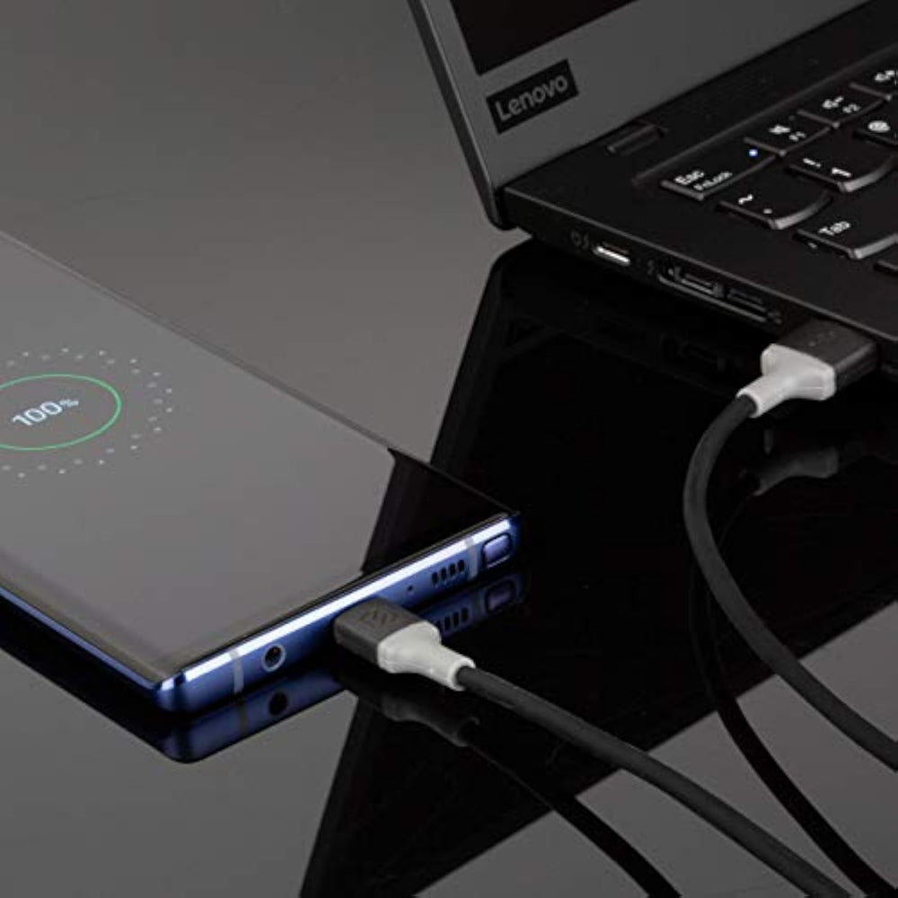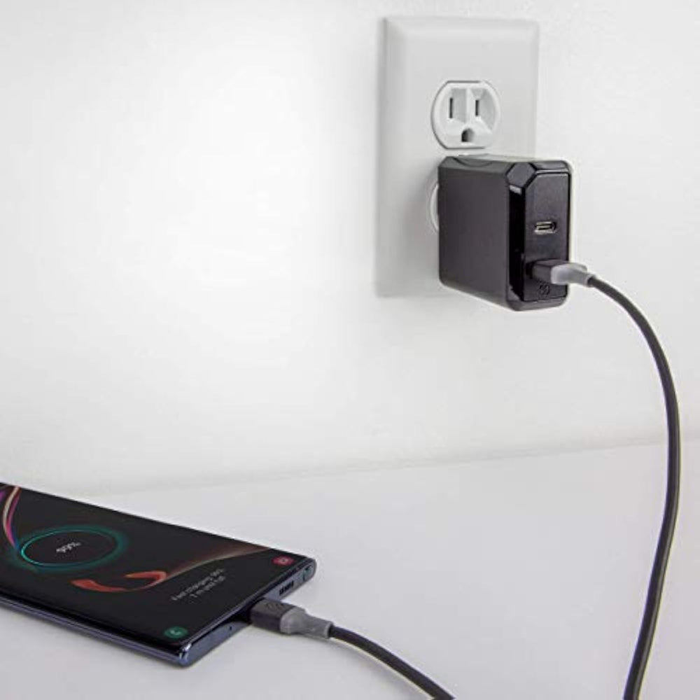 | USB TYPE-C Power: Designed for fast data transfer rates and high-efficiency charging and syncing of TYPE-C device | | Certified USB TYPE-C Connector: Certified to ensure 100% compatibility with USB Type-C products such as smartphones and other standard USB-C devices | | Reversible Connector: New symmetrical Type-C connector allows users to conveniently insert the charge and sync cable either up or down without the hassle of finding the correct side | | 4 Foot Cable: With 4 feet of cable, you have the extra freedom to simultaneously use your device while charging. Molded strain reliefs for enhanced durability | | Compatible With: Samsung Galaxy S10/S10e/S9, Google Pixel, Nintendo Switch and most other USB Type-C and USB-A devices; 3 Year | |