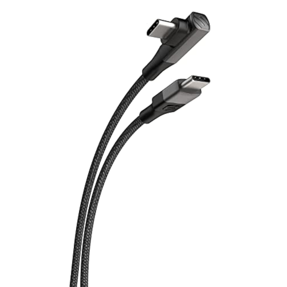 | USB TYPE-C POWER: Designed for fast data transfer rates and high-efficiency charging and syncing of TYPE-C devices. | | CERTIFIED USB TYPE-C CONNECTOR: Certified to ensure 100% compatibility with USB Type-C products such as smartphones, hard drives and laptops. | | RIGHT-ANGLE USB TYPE-C CONNECTOR: The right-angle connection reduces strain on the cable and provides a low-profile charging option for your device. PLEASE NOTE: This cable is NOT recommended for use with rugged phone protective cases. | | SUPPORTS POWER DELIVERY: Designed for fast transfer rates and high efficiency charging and syncing of Power Delivery equipped USB Type-C PD devices for up to 3 times faster speeds than standard USB. | | REVERSIBLE CONNECTOR: The non-right-angle symmetrical Type-C connector allows users to conveniently insert the charge and sync cable either side up without the hassle of finding the correct side. | | TANGLE FREE: Braided cable design helps avoid untangling the cable. | | COMPATIBILITY: Works with the iPad Pro or iPad Air (USB-C versions), Google Pixel, Samsung Galaxy and is also backwards compatible with any other standard USB Type-C or USB Type-C PD equipped devices. | | BUY WITH CONFIDENCE: Backed by Scosche’s