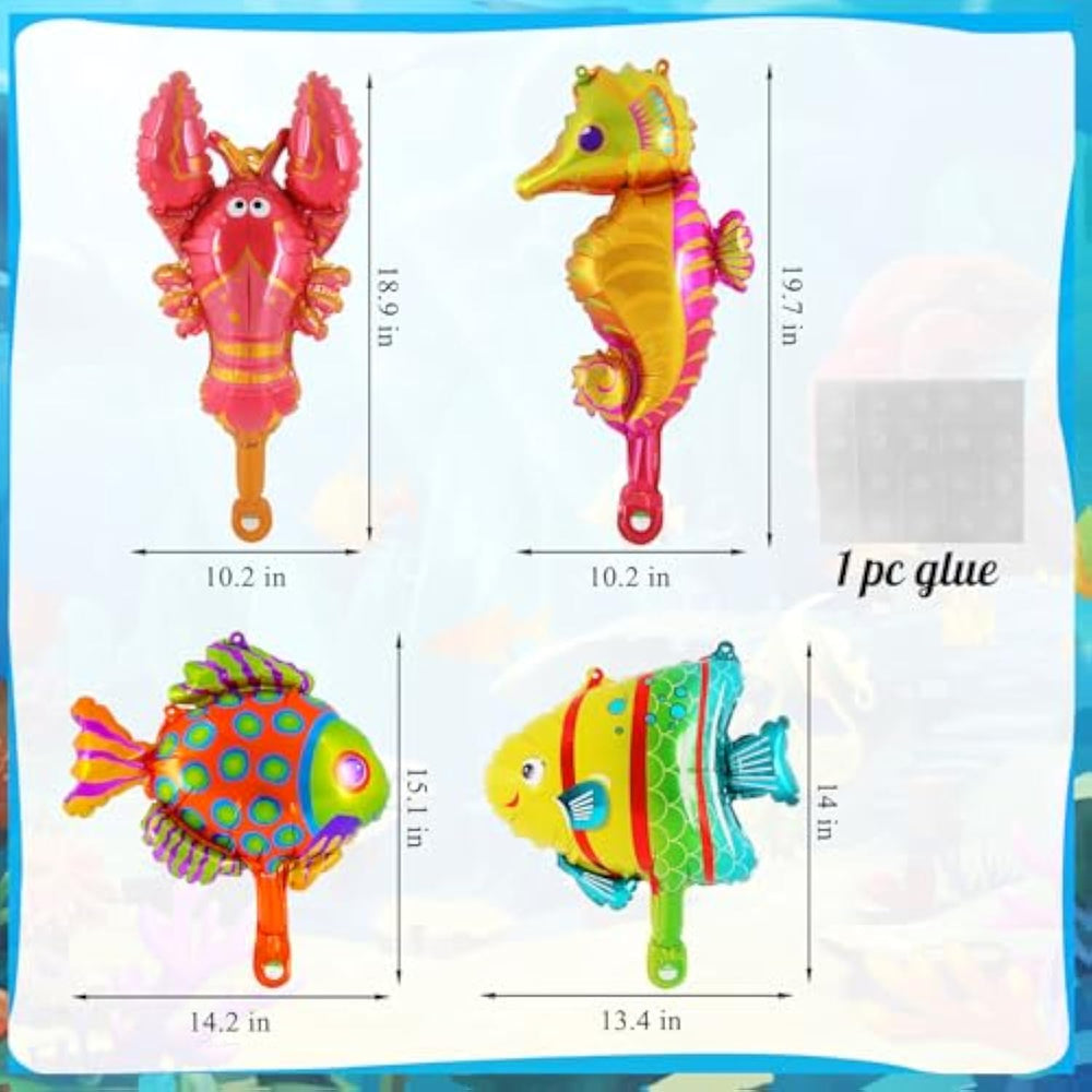 | Package Contains: 1 Pc Blue Number 2 Balloon, And 4 Pcs Mini Sea Animal Balloons. The Number Balloon Measures Around 40 Inch Long, And These Mini Balloons Are Around 19 Inch Long. | | Easy To Use: Inflate The Balloons With Air Or Helium By A Balloon Pump; Pinch The Inflation Valve Gently; Then The Beautiful Ocean Birthday Balloon Set Is There For You. So Easy To Do It! | | Premium Quality: The Sea Animal Balloon Set Is Made From Premium Foil Material. After Being Blown Up, They Can Stay Inflation For Days, And You Can Store Them For Future Multiple Use. | | Perfect Birthday Decor: Nothing Can Highlight 2Nd Birthday And Under The Sea Themed Birthday Party Better Than The Fish Balloon Set. They Are Brilliant Birthday Party Decorations! | | Satisfaction : If You Have Any Question On The Usage Or Quality On Our Ocean Animal Birthday Balloons, Please