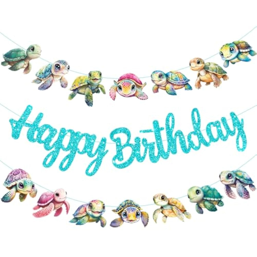 | Package Contains: Includes 2Pcs Sea Turtle Birthday Banners With Adorable Turtle Illustrations In Various Colors And Sizes. All The Turtle Cutouts Are Printed On Both Sides, Create An Interesting Party Atmosphere | | Lovely Designs: This Sea Turtle Birthday Decoration Features Colorful Sea Turtle Cutouts And Glittery Blue 'Happy Birthday' Text, Creating A Striking Underwater Party Atmosphere | | Party Perfect: Ideal For Turtle Birthday Parties, Ocean-Themed Celebrations, Under The Sea Baby Showers, And Underwater-Themed Events With Eye-Catching Sea Turtle Designs | | Effortless Hanging: Pre-Strung Turtle Baby Shower Banners Require Minimal Setup - Simply Hang On Your Wall, Door, Window, Table, Tree And More. Enjoy The Festive Sea Turtle Decoration | | Quality Materials: Our Turtle Party Supplies Are Crafted With Sturdy Materials Featuring Glitter Accents And Vivid Turtle Illustrations That Bring Your Party Decor To Life. Lightweight But Not Easy To Break | |