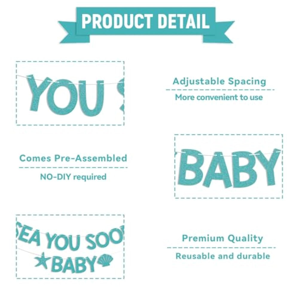 | ??????????????????? ????????????????????? The "Sea You Soon Baby" Ocean Animals Baby Shower Party Decor Banner Has Bright And Vivid Colors, Clear Font Cuts And Novel Style, Which Is The Latest Design Of Our Store In 2025. | | ?????????? ???????????????? The Banner Is Made From Thick, High Quality Cardstock And Each Letter Is Made From 400Gsm Glitter Paper. The Surface Of The Banner Is Glittering And Very Eye-Catching. | | ????????-?????????????? No Need To Assemble It By Yourself. After You Get The Product, Just Unpack The Product And Then You Can Hang The Product On Walls, Cabinets And Windows For Party Decoration And Create A Party Atmosphere Easily. | | ???????????????????? The Banner Is Reusable. They Can Be Folded And Put Away After Use, So You Can Use Them Again And Again For Future Celebrations. | | ????????????-?????????? ???????????????? If There Is Any Problem With The Product And It Doesn'T Meet Your Expected Standard, Please Tell Us, We Will Provide The Best Solution To Ensure Your Shopping Experience! | |