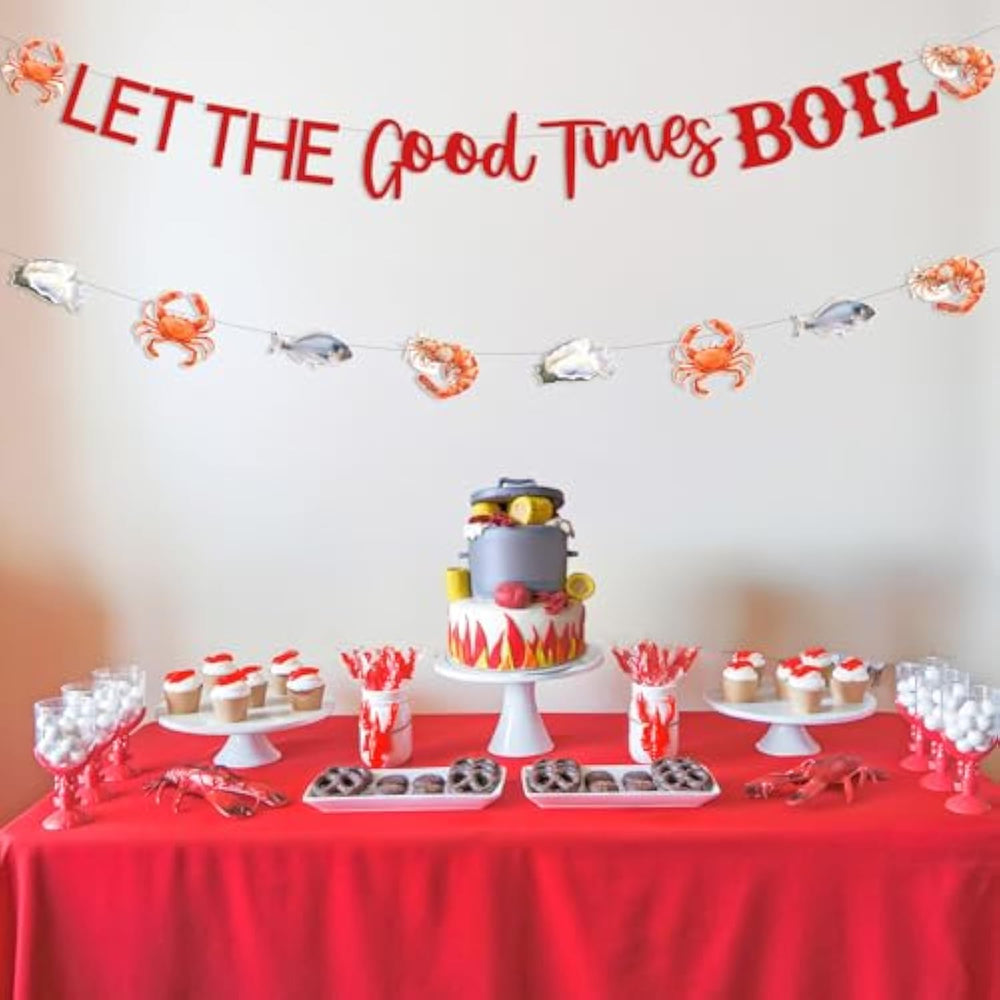 | Package Includes: You Will Receive 1Pcs Let The Good Times Boil Banner And 1Pcs Seafood Garland. The Let The Good Times Boil Banner Contains 17Pcs Cardstock, 1Pcs Cardstock Size Approx 5.94*3.5Inches. The Seafood Garland Contains 8Pcs Cardstock, 1Pcs Cardstock Size Approx 5.83*6.42Inches | | Easy To Hang: The Let The Good Times Boil Banner Need To String It Together By Yourself And The Seafood Garland Is Pre-Strung. The Let The Good Times Boil Party Banner And Garland Are Easy To Hang On The Windows, Walls, Ceilings, Doors, Branches, And Other Places You Want To Decorate. You Can Decorate According To The Effect Picture Or Diy To Create A Unique Seafood Themed Party | | Colorful And Vibrant Design: The Let The Good Times Boil Banner Garland Are Mixed And Combine The Party With Seafood Theme. The Seafood Crab Party Decoration Can Capture Leave A Profound Memory For Your Guests, Which Can Also As A Background For Photos | | Material: Crafted From Cardstock, The Seafood Boil Party Banner Garland Features Vivid Patterns, Such As Lobster, Fish, Crawfish, Shrimp And Crab. As A Seafood Boil Themed Party Decoration, It Is Not Only Smooth But Also Securely Attaches To The Wall, Preventing Easy Falls When Hung. You Can Store It For The Next Party | | Wide Applications: The Seafood Theme Banner Garland Are Suitable For Various Kinds Of Parties, Fishing Birthday Party, Let The Good Times Boil Party, Seafood Boil Party, Crawfish Shrimp Lobster Birthday Party, Housewarming And Family Party | |