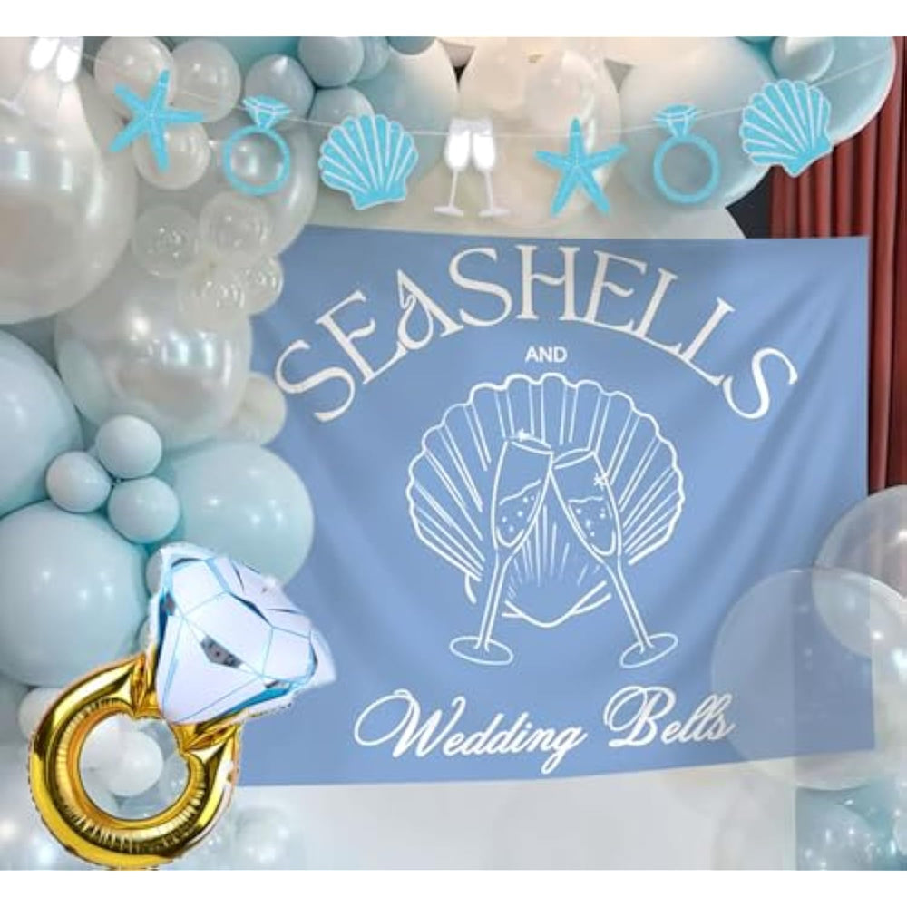 | Perfect For Costal Beach Wedding Engagement Bachelorette Party, Last Toast On The Coast Party Decorations | | Suitable For Indoor And Outdoor Use, And It Is Also Very Suitable For Your Party As A Background Cloth For Taking Pictures! | | You Will Get :1 X Seashells And Wedding Bells Backdrop, 1 X Shells Banner, 20 X Blue White Latex Balloons, 1 X Ring Balloon | |