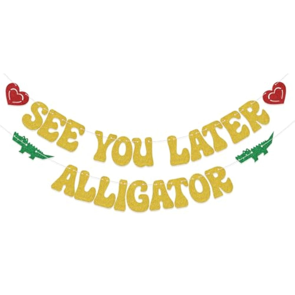 | See You Later Alligator Decor : Unique Design For Happy Retirement Party Decorations. | | What You Will Get : 1 Pcs Of "See You Later Alligator" Shiny Banner, Shiny Color And Beautiful Design Can Decorate Your Happy Retirement Party Well. | | Material : Made Of High-Quality Glitter Paper, Specially Designed For Single Side, Beautiful And Unique.Need Diy, You Just Need To Use The Plastic Needle And Rope To Thread The Holes In The Card. Adjust The Distance Between The Cards For Hanging. | | Party Decorations: Suitable For Many Occasions, You Can Hang The Party Banner On The Wall, They Are Nice Decorations For Your Party At Home, Classroom Or Anywhere. | |