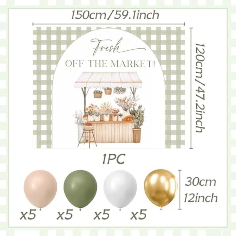 | Fresh Off The Market Decorations: The She'S Fresh Off The Market Green Gingham Backdrop Banner For Bridal Shower Features A Soft Nude Gingham Pattern With Delicate Wildflowers. It'S The Perfect Way To Celebrate Love And New Beginnings In A Natural, Rustic Farmer'S Market Vibe. | | Products Included: You Will Receive 1 Green Gingham "Fresh Off The Market!" Wildflower Backdrop Banner Bridal Shower Decorations, 5 Apricot Balloons, 5 Green Balloons, 5 White Balloons, 5 Gold Balloons. | | Easy To Use: This Green Fresh Off The Market Bridal Shower Backdrop With Gingham Wildflower Design And Size Is 59.1X47.2 Inches. You Can Place Farmers Market Backdrops And Balloons Easily And Quickly! | | Versatile Occasions: This Wildflower Farmers Market Banner Is Ideal For Green She’S Fresh Off The Market Bridal Shower Decorations, Wildflower Fresh Off The Market Themed Bridal Shower Decor, Bride To Be Party With A Farmer’S Market, Garden, Or Rustic Farm Theme. | | Brand Service: If You Have Any Questions During The Shopping Process, We Are Happy To Help You Out. Visit Our Store For More Party Decorations That Suit Your Needs! | |