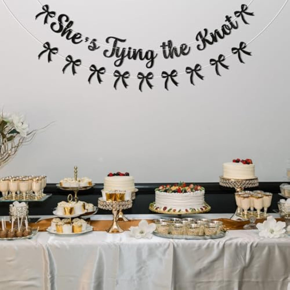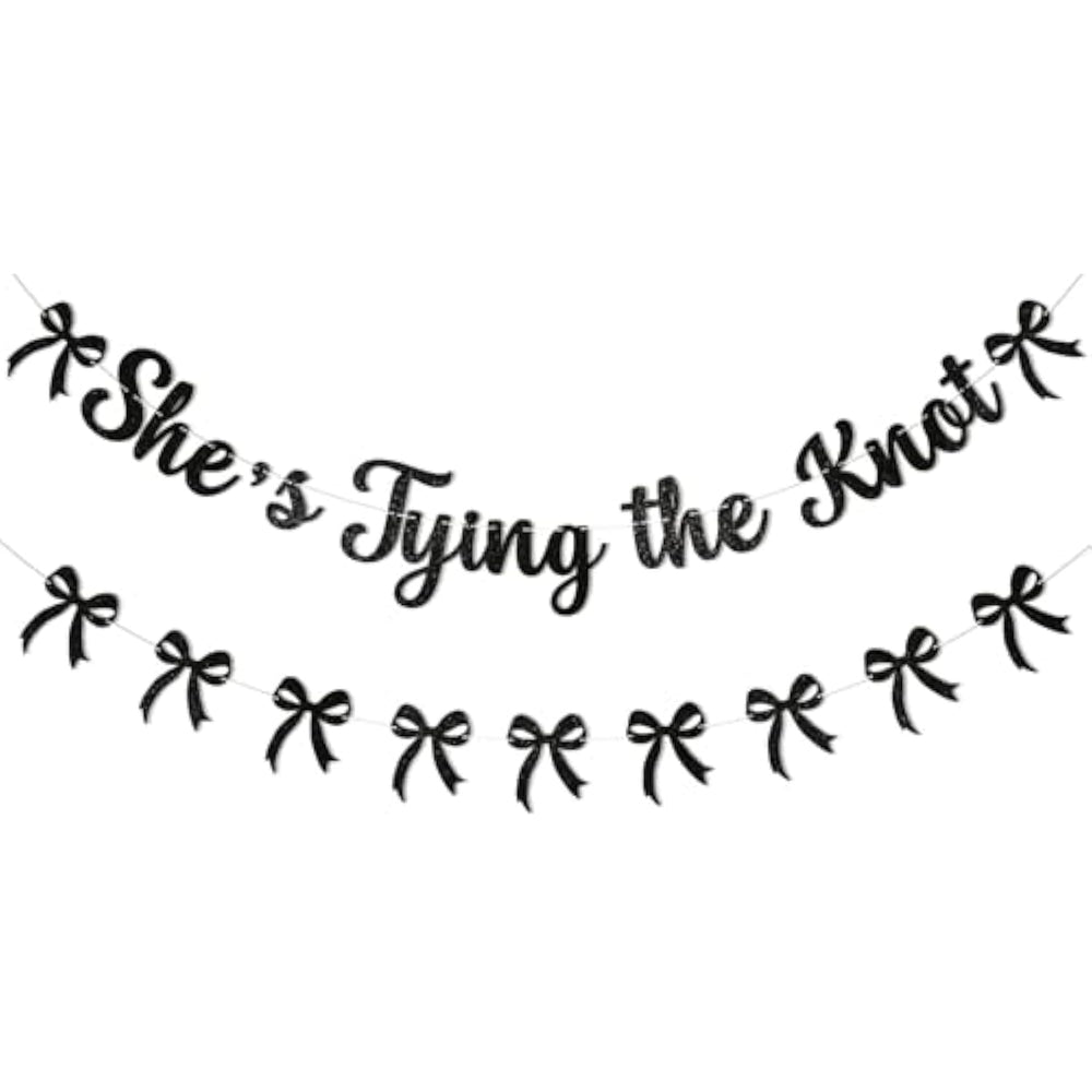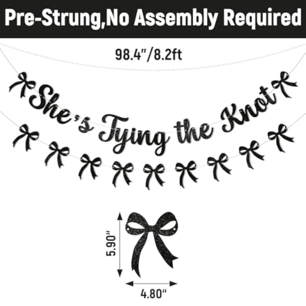| She'S Tying The Knot Banner Black Bow Garland - Black Glitter Bridal Shower Celebration Party Hanging Decorations | | ? All Banners Are Made Using Premium Card Stock, Have A Non-Shed Glitter Finish, And Smooth White On The Back | | ? The Banner Letters Are 5-7 Inches Tall. | | ? You Will Get She'S Tying The Knot Banner With Ribbon And Plastic Needle. | | ? Perfect Addition To Your Black Bow Bachelorette/Bridal Shower/Wedding Party Decor! | |