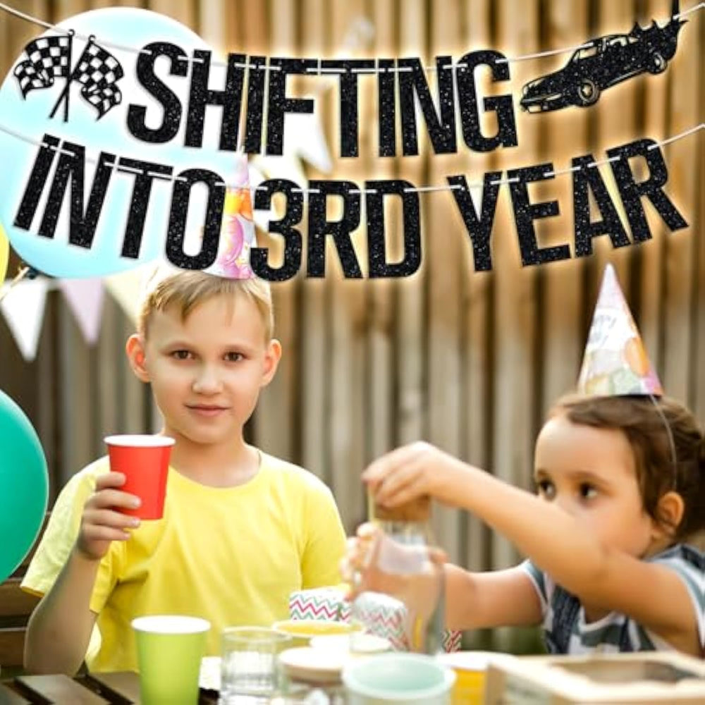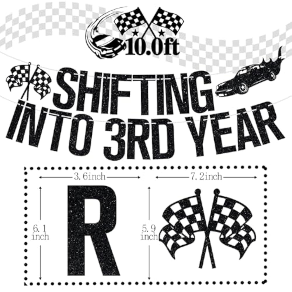 | ?Shifting Into 3Rd Year?: High-Quality Birthday Banner Featuring Vibrant Racing Car Design, Perfect For A 3Rd Birthday Celebration. | | ?Size?: Letters Are Each 5" Tall And Roughly 2.5"-5β Wide. | | ?Material?: 100% Paper. The Banner Is Made Of High Quality Glitter Card Stocks. | | ?Easy Assembly Is Required?: Simply String The Letters Using The Provided String Through The Pre-Punched Holes. | | ?