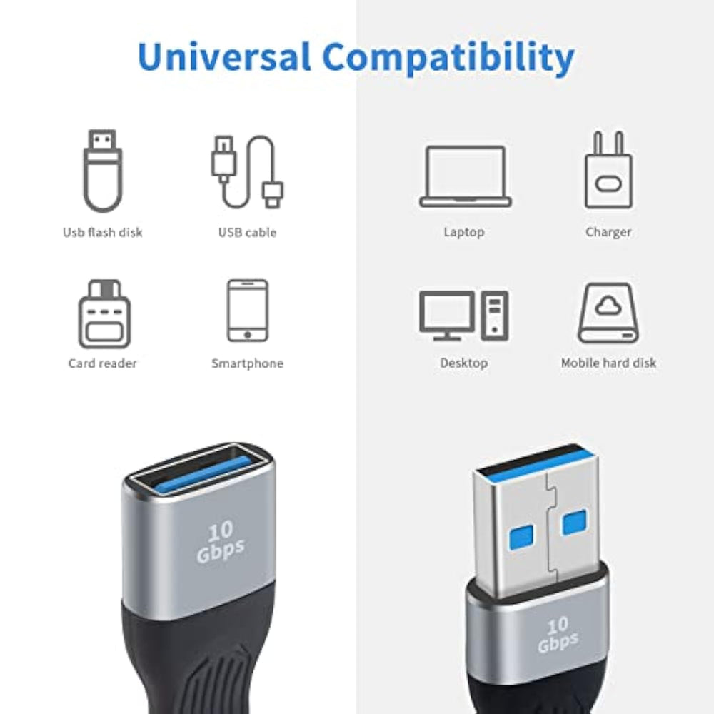 | Usb 3.0 Extension Cable: This Short Usb 3.0 Extension Cable Extends Your Usb Slots Behind Tv, The Computer Or Macbook By 6Inch, For Use With Vr, Playstation, Usb Flash Drive, Hard Drive, Card Reader, Mouse, Keyboard, Printer, Scanner, Camera And Other Usb Computer Peripherals. | | Usb Extender Cable: This Soft Flat Pvc Material Usb 3.0 Port Cable With Aluminum Alloy Case, Flexible And Durable, Plug Play On Universal System, No Driver Required. | | Up To 10Gbps: Usb 3.1 Type A Standard, But Has Increased Power Output - Up To 10Gbps, 20 Times Faster Than Usb 2.0 Transfer Rate, While Maintain Backwards Compatibility With Your Existing Usb 2.0 Devices. | | Durable Flexible: This Usb Extender Cord Is Made From The High Quality Material Of Pvc, It Is More Soft And Flexible To Use, It Can Withstand More Than 12000+ Times Of Bending. | | Package: 1X Usb 3.0 A-To-A Extension Cable. Gold-Plated Connectors Ensures Maximum Conductivity And Minimum Data Loss. | |