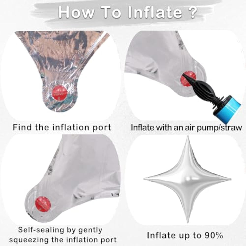 | ?16Pcs Star Balloons?Package Include 6Pcs 26Inch Silver Star Foil Balloons,10Pcs 10Inch Silver Star Foil Balloons,1Pcs Straw,1 Roll Ribbon ,1 Piece Balloons Glue Points.Enough To Decorate Your Balloon Party Better . | | ?Quality Material?Four Angle Star Balloons Are Made Of High Quality Aluminum Foil, Which Is Sturdy And Durable, Not Easy To Leak Gas Or Break During Inflating. And You Can Also Use A Straw Inserted Into The Inflation Port To Deflate The Air Or Helium For Next Time To Use. | | ?Filling With Helium Or Air ? 26Inch 4 Point Star Balloon Can Float When Filling With Enough Helium, But 10" Four Pointed Star Balloons Are Not Able To Float,So You Can Use A Straw Or Air Pump To Inflate These 10'' Star Balloons ?Then Use Balloons Glue Points To Fix. | | ?Cute Party Decoration?These Star Foil Balloons Are Shining And Exquisite. Different Shapes And Size To Satisfy Your Needs, They Can Be Used As The Photo Background Backdrop Or Add These To Your Balloon Garland Arch Kit , Which Will Make Your Party More Delicate. Leaving Your Guests An Impressive And Unforgettable Memory. | | ?Occasion?Perfect For Birthday Party, Baby Shower, Bridal Shower, Wedding,Engagement,Anniversary, Graduation, Gender Reveal Decoration,Christmas Patry,New Year Eve Party Supplies 2025, And Other Indoor Or Out Door Events Background Decorations | | ?Note?Due To The Product Batch Problem,It May Lead To Some Color Difference Of The Balloon,Please Take The Received Object As The Standard.Also,Please Do Not Over-Inflate The Aluminum Film Balloon Or Rub It Against Sharp Objects To Avoid Explosion. | |