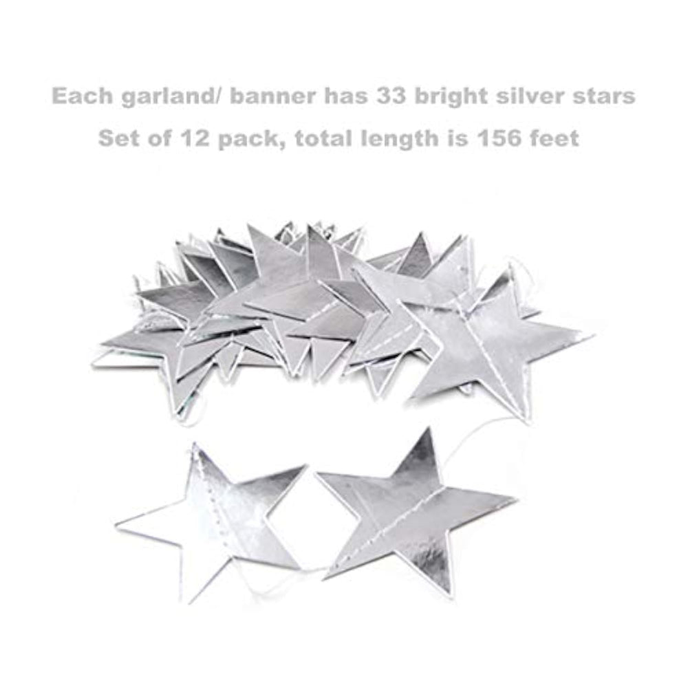 | ? Bright Silver Star Garland Banner: The Package Includes 12 Pack Silver Star Garlands, Each One Is 13 Feet In Length, 156 Feet In Total Length. These Garlands Are Designed To Serve As Reusable Party Decorations, They Can Be Reused At Various Parties. Each Garland Has 33 Sparkling Paper Stars Of The Same Size 2.75 Inch. Since You Have Enough Garlands, You Can Use Them As Banners At The Same Time. Let'S Imagine That There Are Sparkling Stars Everywhere, It Will Definitely Make Your Party Shine. | | ? Sparkling Design Easy To Use: Designed For Sparkle And Luxury. These Silver Stars Are Double-Sided, So Under The Faint Sunlight Or Strong Light, They Will Be Extraordinarily Dazzling And Full Of Luxury. And They Are Reusable And Easy To Store. Each Garland Has A Separate Wrap. The Stars Are Sewn Together With A Thread. When You Use It, Gently Unfold The Garland To Avoid Tangling, Then Adjust The Distance Of The Stars According To Your Needs, And Hang Them Anywhere You Like. | | ? Premium Quality: This Garland Is Made From Quality Reflective Craft Cardstock, Which Has Smooth Surface, And Hand-Sewn With Thread. They Are Durable And Reusable, And Each Garland Has Its Own Packaging. After The Party Is Over, Carefully Close Them Up, So That You Can Use Them Next Time. These Beautiful Silver Star Garlands Are Carefully Crafted By The Ingenious Girls Through Many Processes, With Meticulous Workmanship, Neat Work And Top Quality. You Will Never Miss Such A Beautiful Thing! | | ? Wide Range Of Applications: They Are Great For A Variety Of Parties And Celebrations. Ideas For Baby Showers, Wedding, Birthday And Holiday Parties, Especially Suitable For Christmas, You Can Hang Them On The Christmas Tree And They Will Shine With The Colored Lights. | | ? Perfect Gift Idea: You Can Also Give Them As A Gift To Your Friends, Colleagues, Classmates, And Neighbors. It Is Definitely A Great Gift For Your Home, Garden, Birthday Party And Holiday Party Decorations! | |