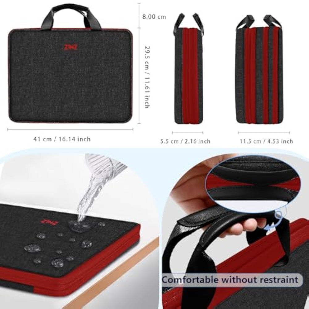 | Slim Expandable - A Variable Capacity For A Flexible Load. The Laptop Handbag Owns Two Compartments, The Laptop Compartment Is For Storage Your Digital Devices, Laptop, Ipad, Phone, Charger, Power Bank And Keep Them Safety; The Expandable Compartment Can Release More Capacity For Loading, Just Like Books, Files, Glasses Box Etc. This Laptop Case Is Easy To Transform Between Slim And Expandable, Which Make It Convenient For Daily Use And Traveling Wherever You Go. | | Perfect Protection - Compared With Other Similar Laptop Case, Comes With Fullprotection Patent Design Around Whole Compartment And Thick Internal Cushioning Low Rebound Foam Around Your Device And A Ultra-Thick Soft Protective Ridge Around The Zipper To Ensure Your Laptop Will Remain Safe From Drops, Bumps, Dents, Scratches And Spills, Like The Car Airbag. Great Gifts For Men And Women. | | Recycled Fabrics - In Effort To Support Environmental Protection, This Laptop Case With Durable Recycled Fabric, That Is 100% Post-Consumer Material Made From Pet Plastic Bottles. We Are Committed To Providing Daily Protection For Your Laptop While Also Being Environmentally Friendly, Using Repurposed Plastic Into Everyday Products That Benefit You And Our Planet. This Laptop Carrying Case Is Pefect Gifts For Your Family And Friends. | | Friendly Design - With Leather Portable Handle, The Both Compartments Are Top Opening Double Zippers Gliding Smoothly Freely 180 Degree Wide Opening To Meet Tsa Requirement For Convenient Inspection And Fast Customs Clearance. Being Lightweight, Compact And Can Be Comfortably Carried Or Slipped Inside Your Backpack Or A Messenger Bag. Ideal Gifts For Anniversary Birthday, Christmas Present. | | Size Compatibility - Internal Dimensions: 15.35 X 11.02 X 1.57/3.74 Inches; Compatible With Macbook Pro 15 16 Inch And Comfortably Fits Most Laptops Up To 15.6" Hp, Surface Laptop, Dell, Asus, Acer, Msi, Razer Etc. If For Any Reason You Are Not Satisfied With Our Product, Please Feedback To Us, We Offer 24 Hours After Sales Serivce | |