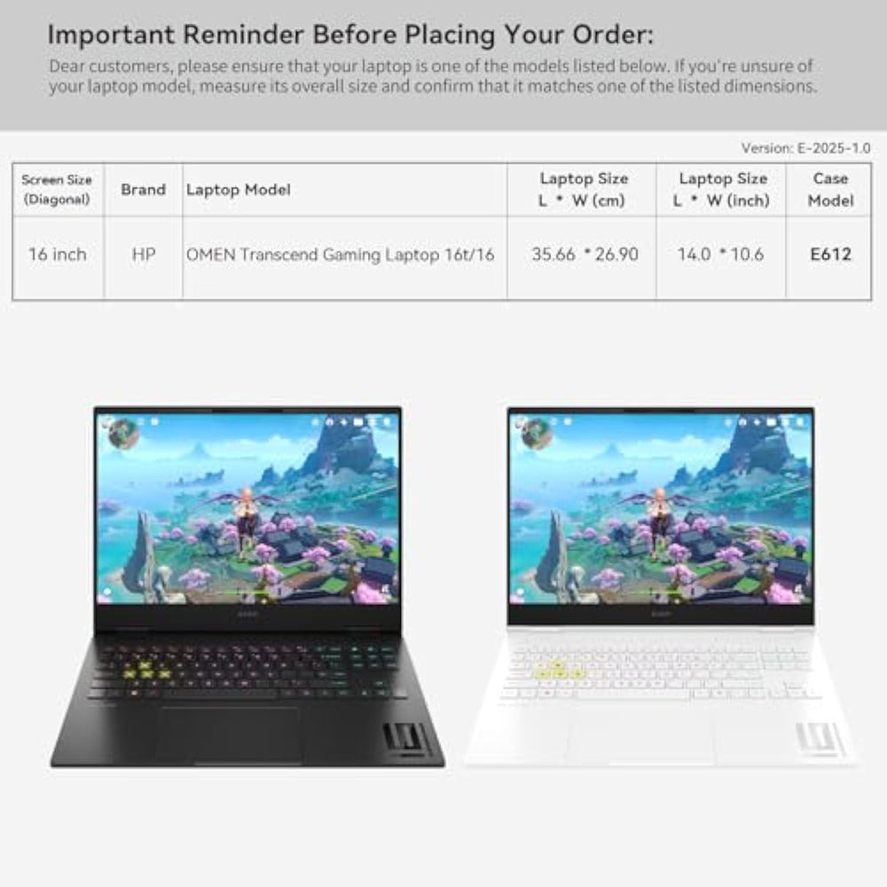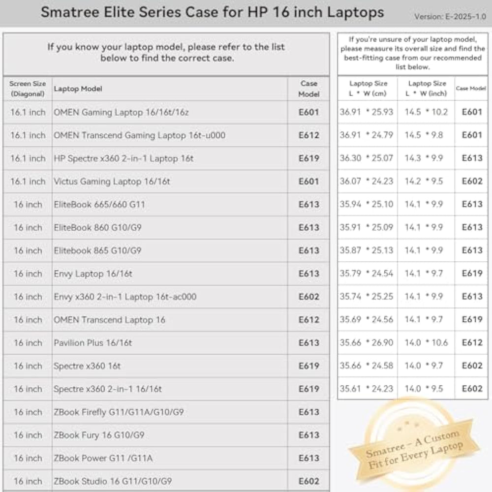 | Model No.: E612; internal dimensions of the case:38.5x28x2.5 cm (15.16x11.02x0.98 inch) | | Advanced Shock Protection with “Super Corner” Design: Our patented “Super Corner” impact protection technology is engineered to safeguard your laptop from accidental drops and bumps. This unique design delivers superior protection without adding unnecessary bulk, ensuring your device remains secure in a sleek, perfectly sized sleeve | | Specifi