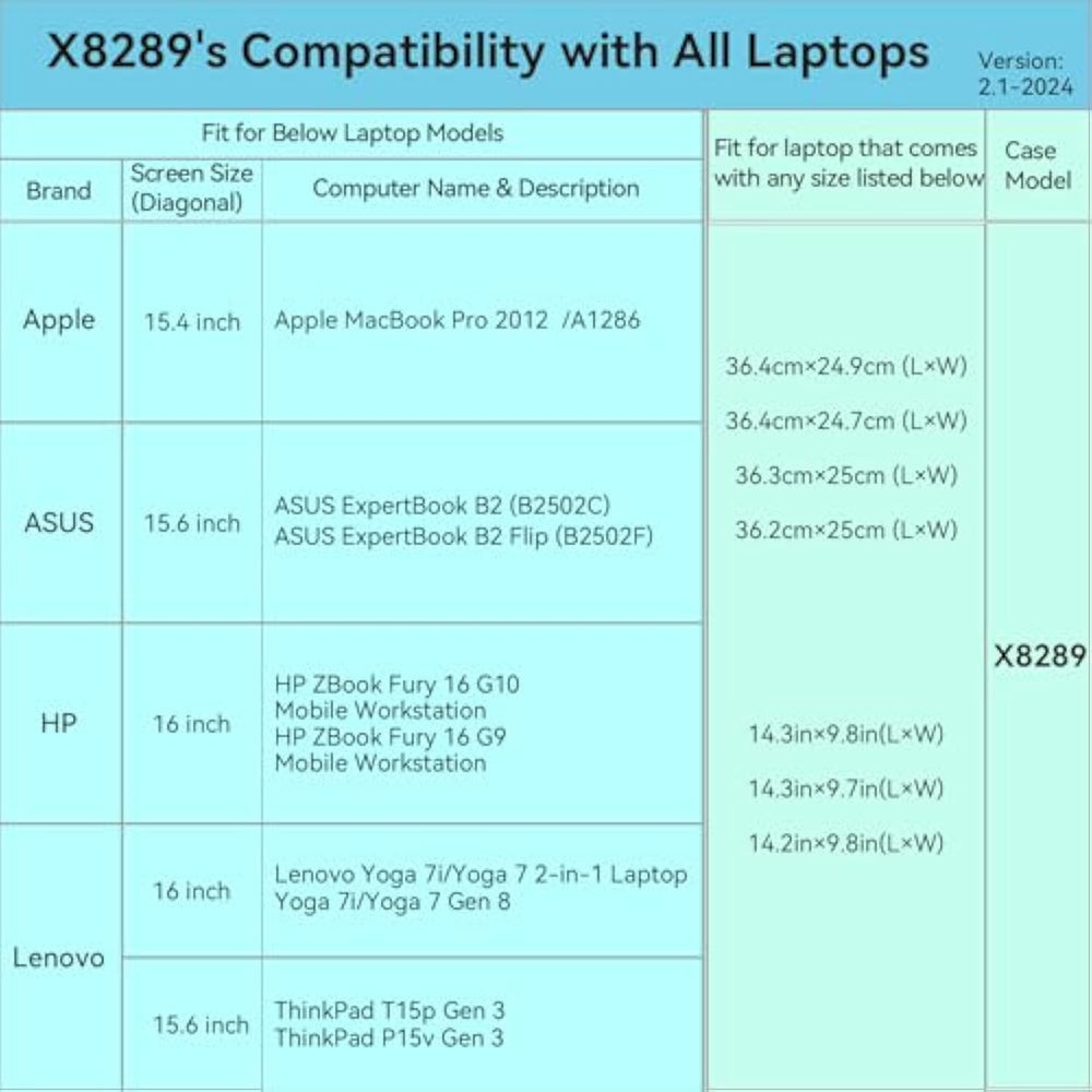 | Model No.: X8289; internal dimensions of the case: 36.8x25.5x2.7 cm (14.5x10.0x1.1 inch) | | Compatibility: designed to perfectly fit for 16 inch Lenovo Yoga 7i/7 2-in-1; 16 inch Lenovo Yoga 7i/7 Gen 8; 15.6 inch Lenovo ThinkPad T15p/P15v Gen 3 | | Anti-Shock: EVA hard sleeve and features internal upgraded shock resistant padding layer, protect your laptop from inadvertent collision and accidental scratches when put in backpack or suitcase | | Waterproof: the smatree sleeve is made of durable 1600d nylon, it obstructs water effectively. Don't worry about splashing water, washable when laptop sleeve case becomes dirty | | Fashion Style: unique diamond pattern on the surface makes your case unique, personalize your laptop with its own unique style | | Customized for Lenovo Laptops: smatree has more than 20 sizes of hard EVA protective sleeve case customized for Lenovo laptops. If you're not sure which model of case is fit for your laptop, please feel free to
