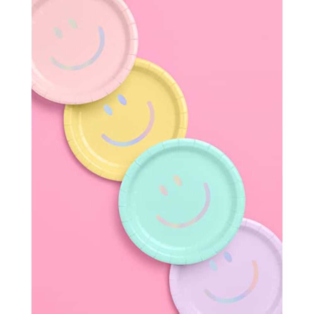 | Say Cheese: Our 24 Pack Of 9" Smiley Face Printed Paper Plates Are The Party Addition You'Ve Been Looking For + A Hit! | | Happy Daze: Our Plates Come With 24 Pastel Plates In 4 Colorways - Pink, Purple, Blue, And Yellow - With 6 Pcs Per Color! | | For Every Event: One Size Fits All! Whether You'Re Hosting A Bachelorette, Birthday, Dance Party Or Even Just A Random Saturday Hang.. Our Plates Will Look Fab! | | Happy Face: These Smiley Face Plates Feature A Metallic Iridescent Foil Smile Design! | |