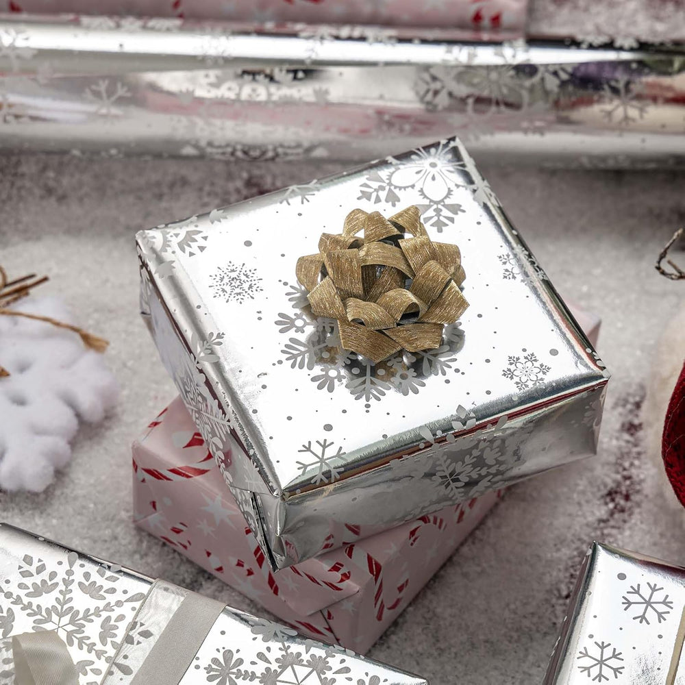 | Christmas Wrapping Paper: Our Gift Wrapping Paper With Cute White Snowflake Makes Your Presents More Eye Catching And Attractive. The Reverse Is Pink Candy Cane Pattern. Mini Roll: Include 1 Roll Of 17 Inches X 32.8 Feet (46.50 Sq.Ft.Ttl.). There Is Enough Funny Gift Paper For Wrapping Multiple Gifts And Perfect For Small And Medium Gift. No Crease: Comes In Roll Form Consisting Of 1 Separate Individually Wrapped In Plastic, Not Folded So No Creases. Our Silver Wrapping Paper Is Versatile For Any Age Or Gender. Share Happiness And Love: A Gift Is Not Only A Material Present, But Also An Expression Of Your Emotion And Love. This Is Especially True Of Hand-Wrapped Gifts. The Christmas Wrapping Paper Roll Is A Great Helper To Make Your Presents More Attractive And Gorgeous. Use All Winter: The Cute Gift Wrap Is Perfect For Christmas Parties, Baby Shower, Winter, Holiday And Any Celebrations. Suitable For Kids, Boys And Girls, As Well As Men And Women.