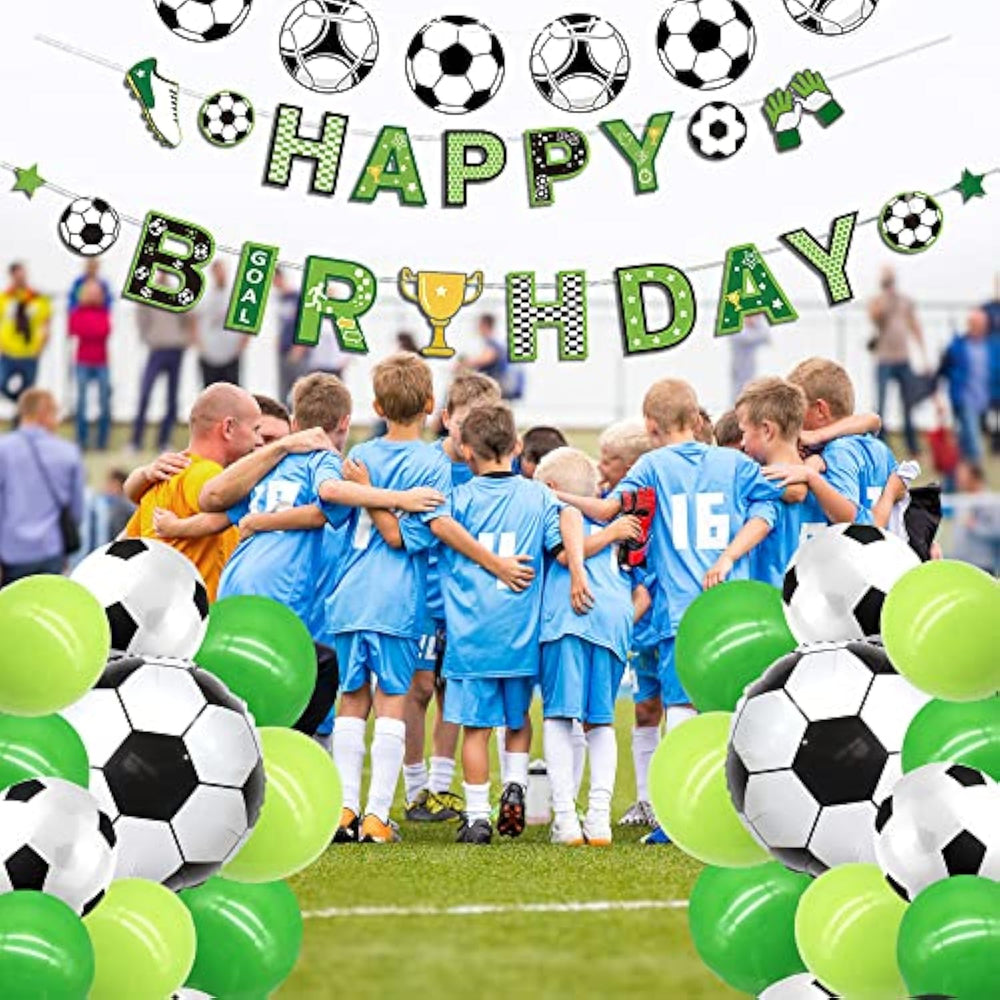 Quantity:You Will Receive 1 Happy Birthday Banner, 1 Happy Birthday Cake Topper, 1 Soccer Banner, 10 Green Latex Balloons, 10 Fruit Green Latex Balloons, 10 Soccer Latex Balloons, 2 Soccer Aluminum Film Balloons. | Material:Latex Balloons Are Made Of High-Quality Materials. Banners Are Made Of Paper. These Balloons Are Not Easy To Break And Can Be Reused. These Party Supplies Are Not Suitable For Children Under 3 Years Old, Please Use Them Under The Guidance Of Adults To Prevent Children Accidental Ingestion. | How To Use:String The Letters Together And Hang Them On The Wall Or Window. You Can Fill The Balloon With Air Or Helium. It Is Recommended That The Inflation Should Not Exceed 90% To Prevent The Balloon From Bursting. | Convenient:These Balloons Are Very Convenient When Inflated. Suitable For Setting Up Party Scenes Quickly. These Balloons Can Be Reused, Are Easy To Fold, And Do Not Take Up Space. | Applicable Scene:You Can Use These Balloons To Decorate Your Birthday Party, Commemorative Party, Soccer Theme Party, Football Theme Party, Sports Club Party, Etc. Let The Cool Soccer Theme Party Supplies Accompany You Through An Unforgettable Day. |