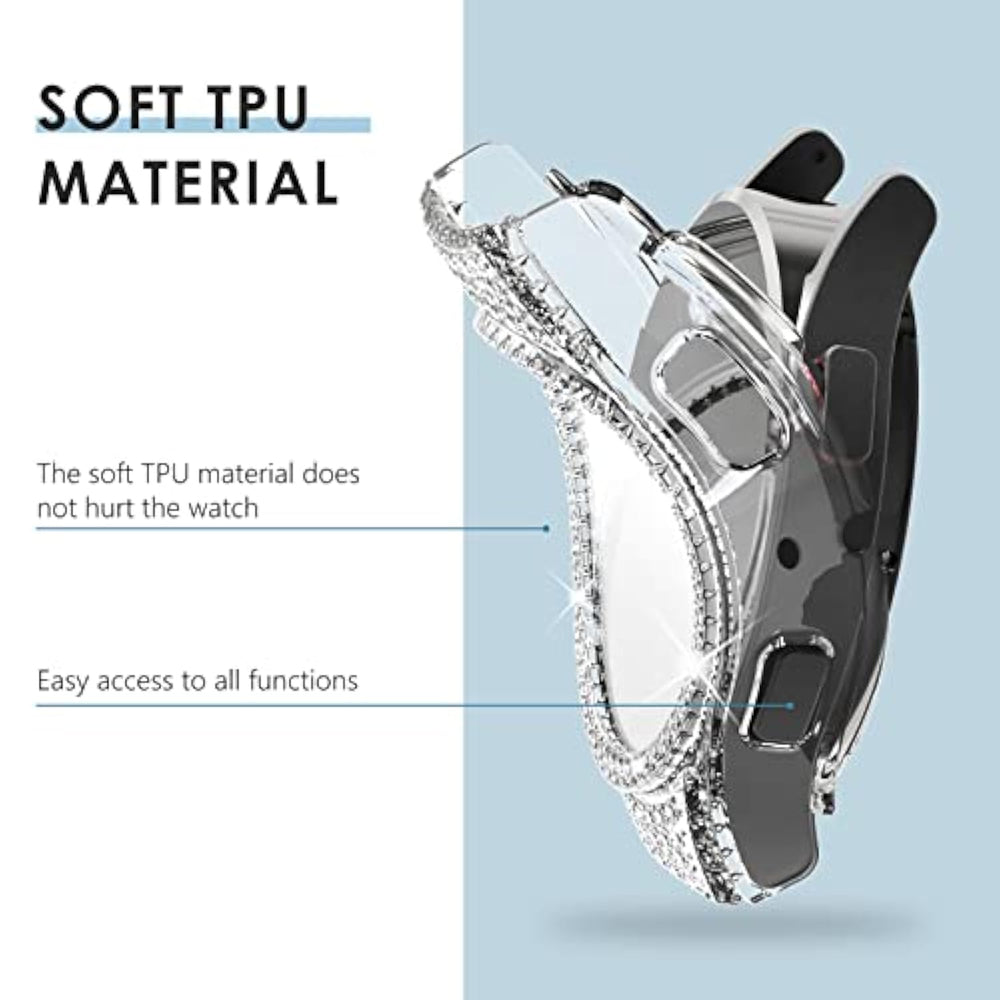 | Please Check Model Before Order- Compatible With Samsung Galaxy Watch 4 40Mm Galaxy Watch 5 40Mm Smartwatch. 3 Packs Soft Tpu Bumper Screen Protector Case With Sparkling Crystals. Celebrate The Ones You Love And Moments You Cherish With A Whole Lotta Sparkle. | | Eye-Catching And Protective- Sparkling Galaxy Watch Case Adorned With Over 150 Cubic Zirconia Crystals, Perfect For Upgrading A Casual Outfit Or Complementing A Luxurious Evening Look, It Allows Your Watch To Double As A Handy Gadget And Glamorous Jewelry. | | Full Protection- Soft Tpu Material With Flexible And Shock-Absorbent Layer, This Full Coverage Protective Case Protects Your Galaxy Watch Screen And Four Side From Drop And Scratches, Shatter, Collision Or Other Potential Damage. Tpu Material Does Not Hurt Your Watch. | | Soft Tpu Bumper- Made Of All-Around Soft Flexible Tpu, Waterproof, Easy To Install And Take Off, No Need To Remove The Case To Charge. Sensitive Touch Keep Your Watch'S Tough Sensitivity And Display As Original. | |