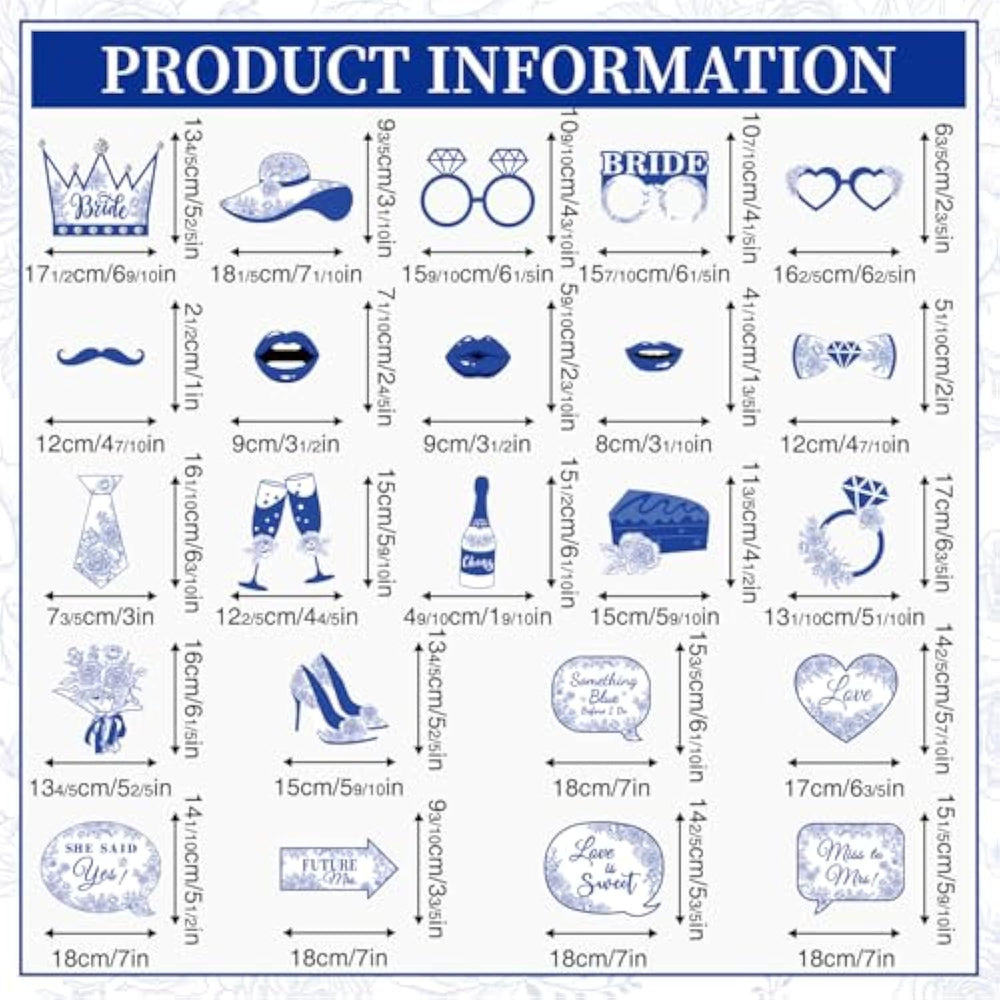 | Festival Atmosphere Creator: 24 Pcs Blue Bachelorette Party Decorations Including 1Pcs Photo Frame,23 Pcs Photo Booth Props,23 Pcs Wooden Dowel Sticks And 2 Pcs Of Non-Trace Glue Points. Our Bridal Shower Decorations Blue Feature A Variety Of Singer Designs, Including "Something Blue Before I Do" Signs, The Photo Booth Features A Classic Color Scheme That Blends Tradition And Fashion, Showcasing A Luxurious Temperament | | Easy To Diy: The Bachelorette Party Decorations Blue Photo Booth Props Photo Frame Come With Bamboo Sticks And Sturdy Glue Dots. Simply Attach The Included Wooden Sticks To Each Card Prop Image By Applying The Provided Tape For Immediate Use(Usage Refer To The Image), Then Hold The Prop In Front Of Your Face, Over Your Head, Etc. Celebrate The Arrival Of The Party Together And Take Commemorative Photos | | Quality Sizes: This Bridal Shower Photo Booth Props Kit Is Made Of Paper And Strong Wooden Sticks, Durable And Easy To Assemble. The Sizes Of The Photo Props Are Listed In The Product Image. Wooden Sticks Measure 8 Inches, Which Is A Perfect Size To Hold In Hand, Enough To Dress Up With Family And Friends At The Party, High Quality Photography Props Help You Capture Every Exciting Moment | | Applications Occasion: Perfect Picture Frame, Photo Props, Outdoor, School, And Office Parties, As Props, Or As Table Decor At Your Reception. Strike A Pose And Make Some Wonderful Memories, Props Suit Any Crowd, Seize The Party Atmosphere And Make Our Photo Booth The Perfect Companion For You To Capture Beautiful Memories! | | Perfect Party Supplies: Something Blue Bridal Shower Decorations Also Have High Versatility And Is Suitable For Various Occasions At Family Gatherings, It Serves As A Warm Backdrop For Recording The Moment; It Can Add A Festive And Joyful Atmosphere Your Party | |